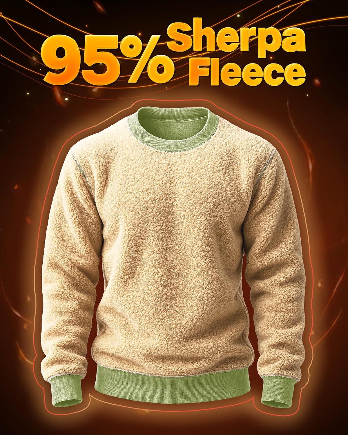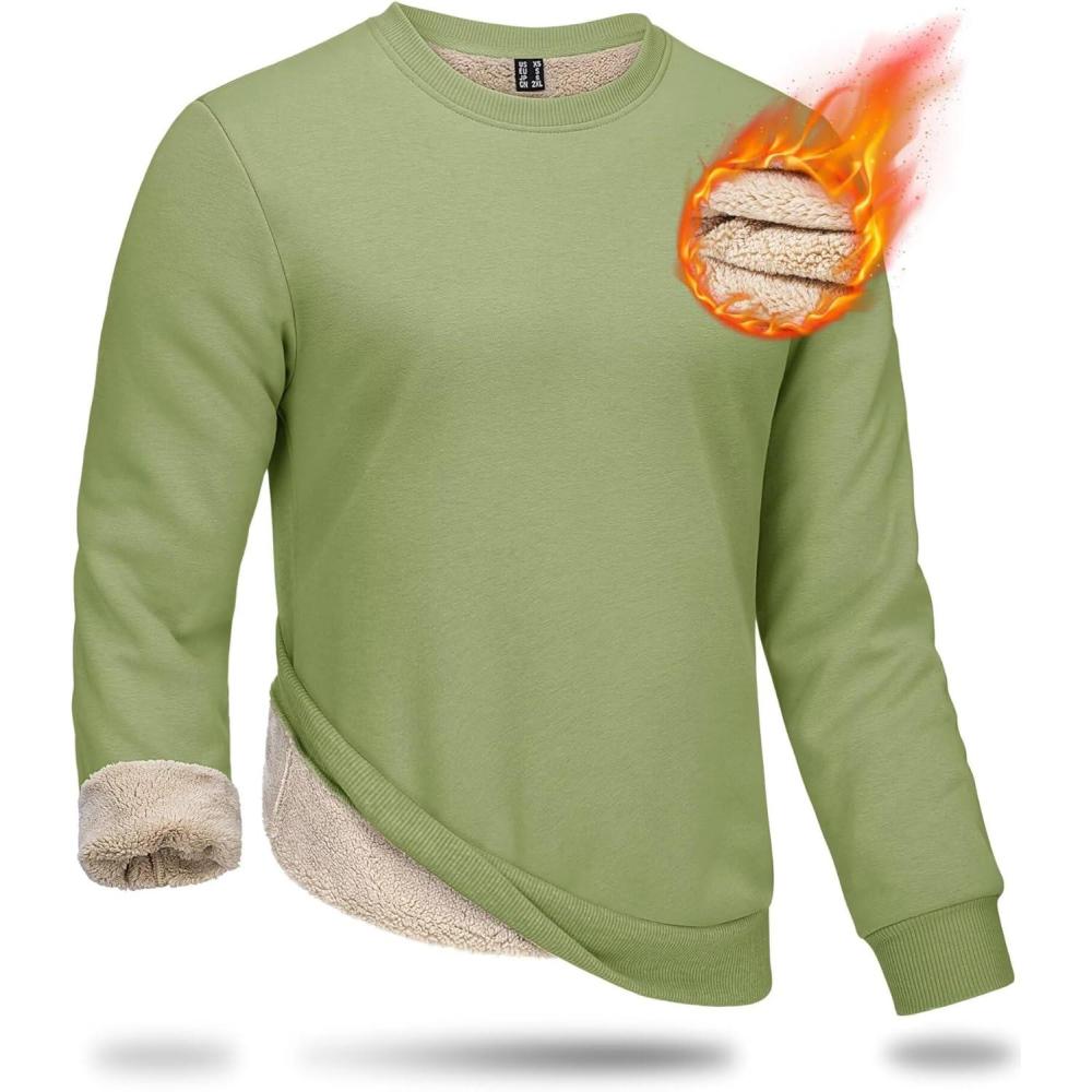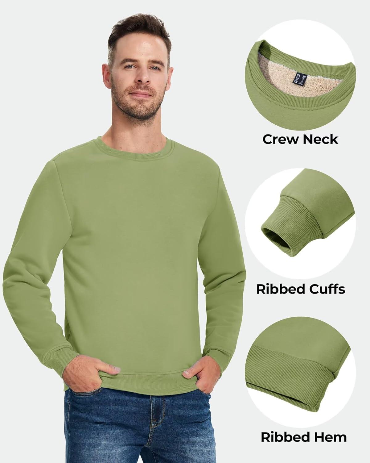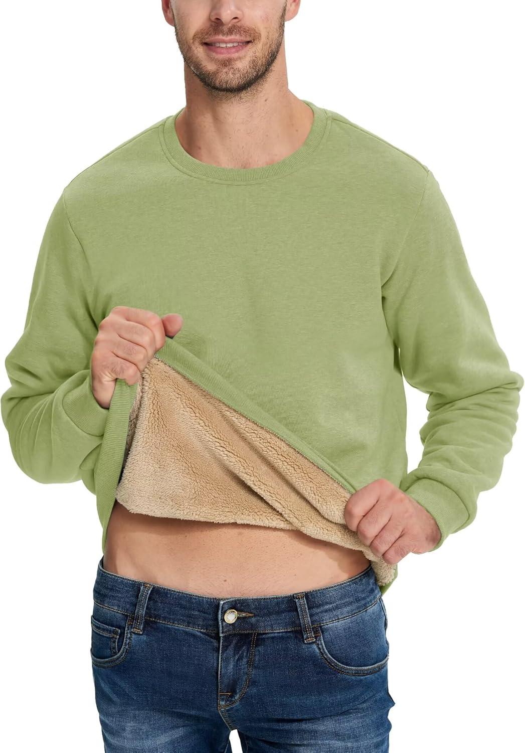 Boladeci Men's Full Sherpa Lined Crewneck Sweatshirts Heavy-weight Fleece Pullover Thick Thermal Long Sleeve Cotton(Olive Green)