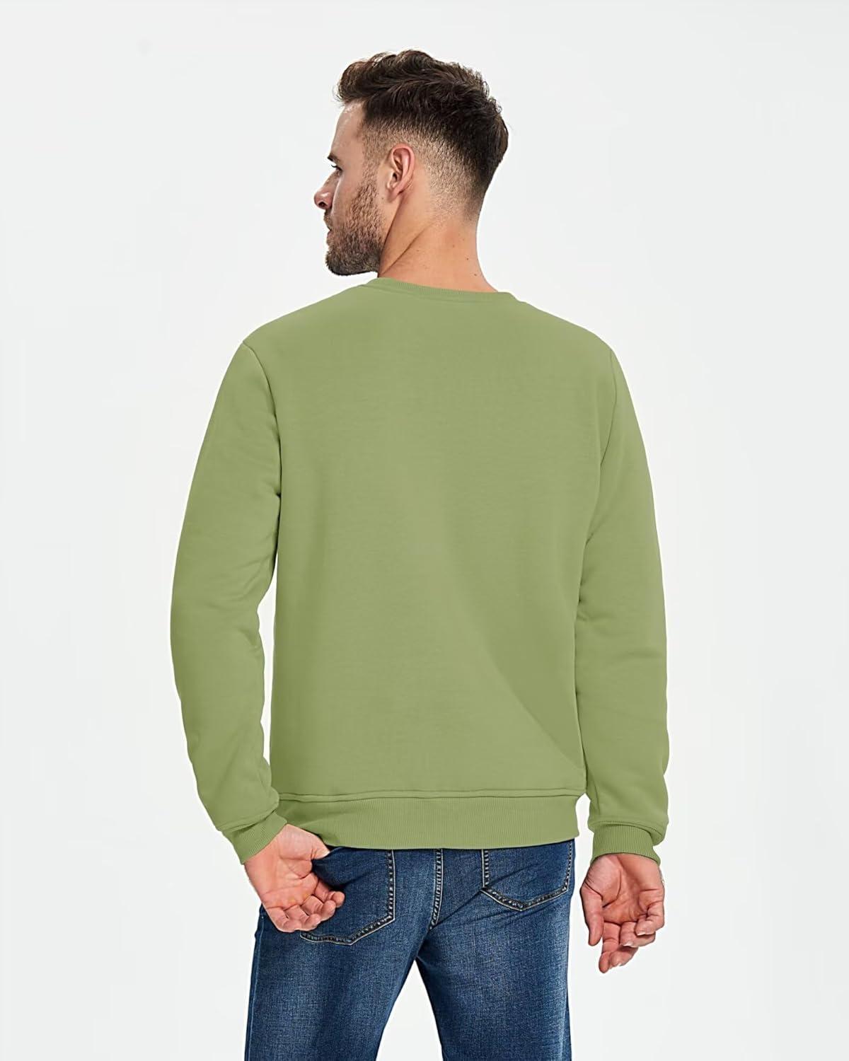 Boladeci Men’s Full Sherpa Lined Crewneck Sweatshirts Heavy-weight Fleece Pullover Thick Thermal Long Sleeve Cotton(Olive Green)