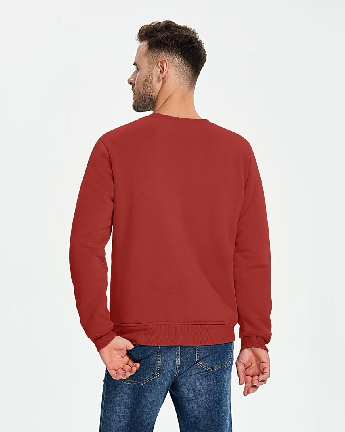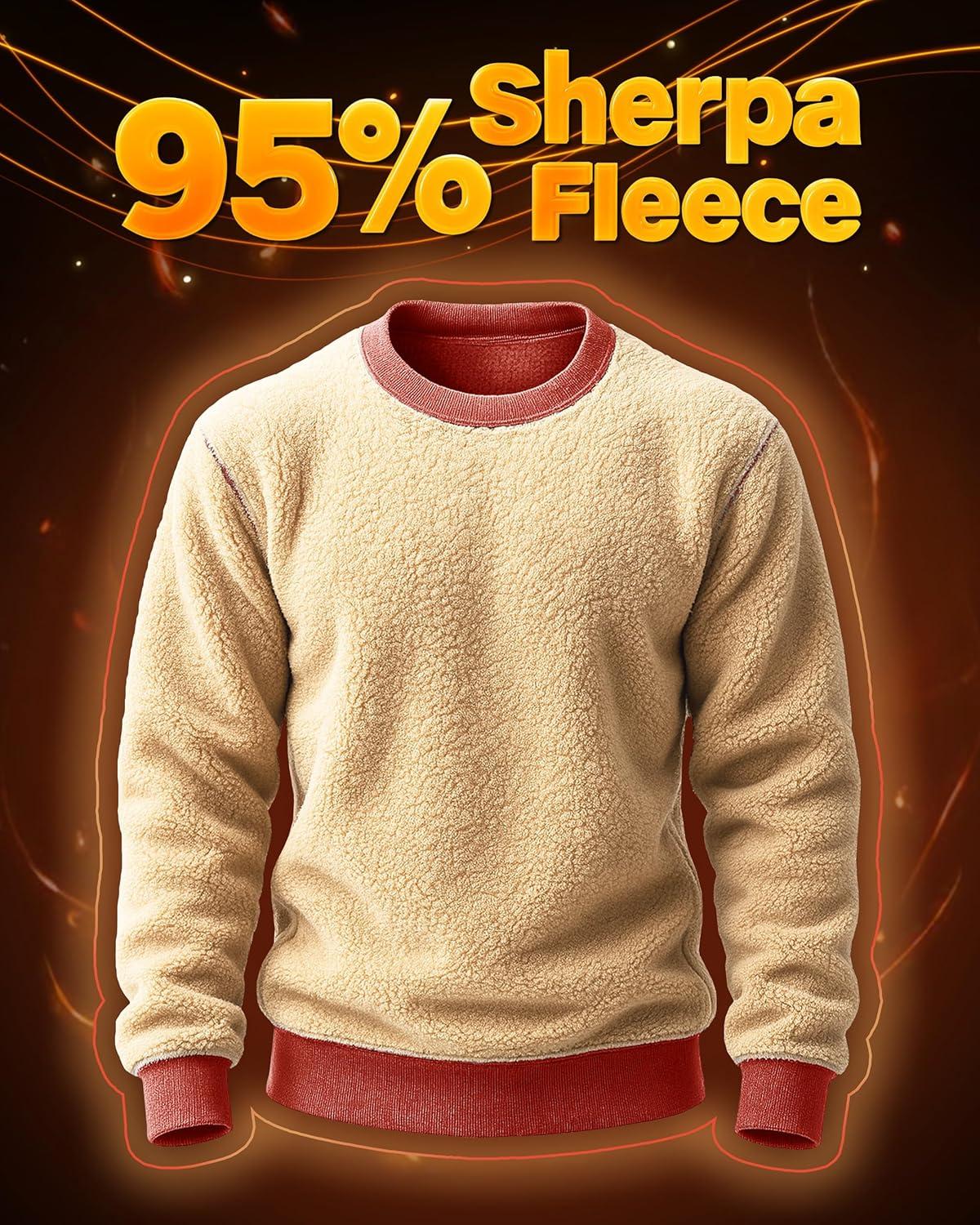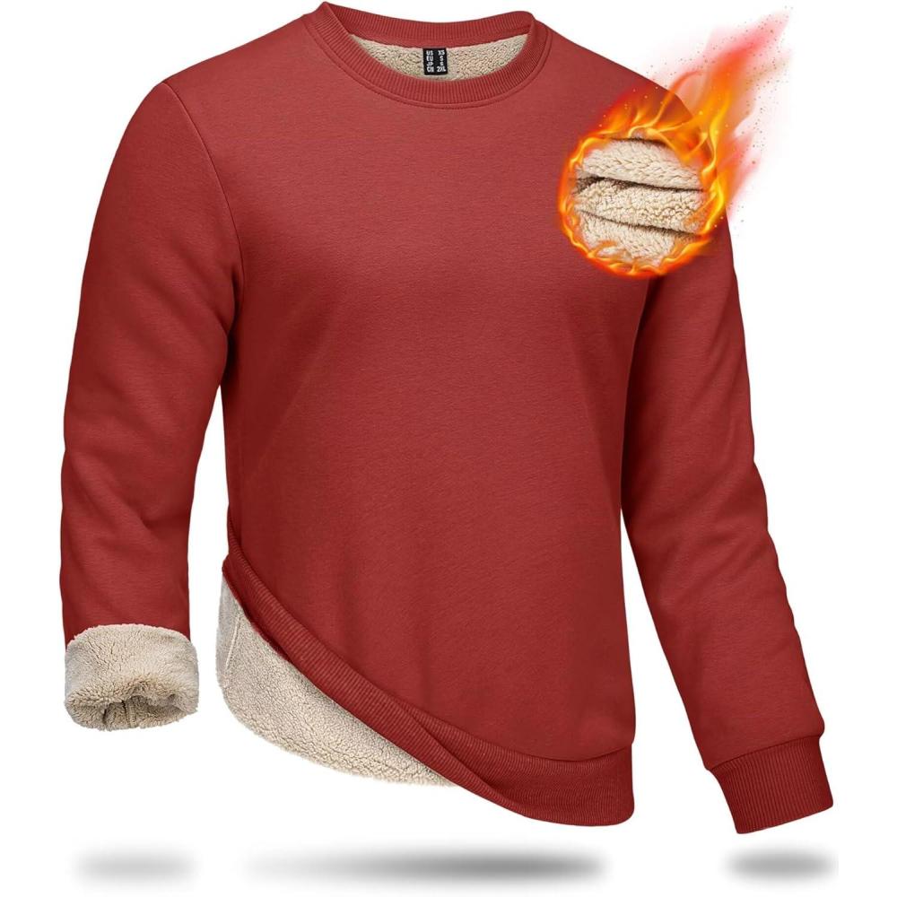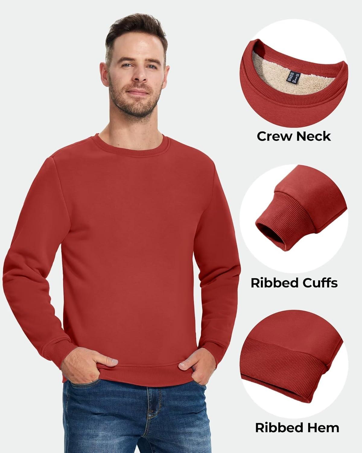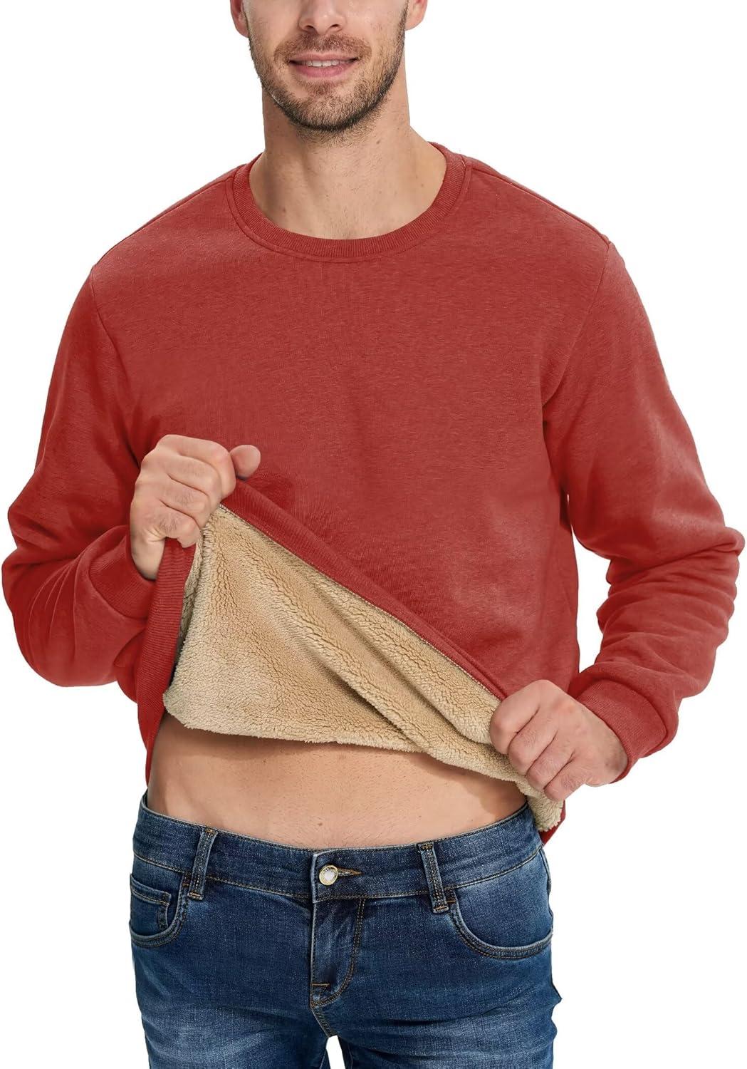 Boladeci Men’s Full Sherpa Lined Crewneck Sweatshirts Heavy-weight Fleece Pullover Thick Thermal Long Sleeve Cotton(Orange Red)