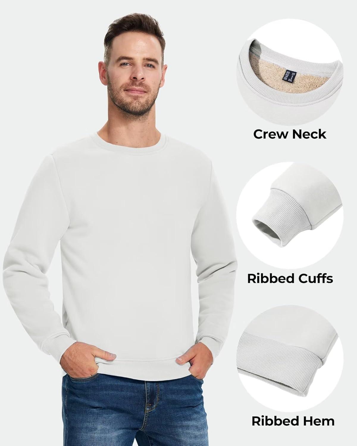Boladeci Men's Full Sherpa Lined Crewneck Sweatshirts Heavy-weight Fleece Pullover Thick Thermal Long Sleeve Cotton(White)