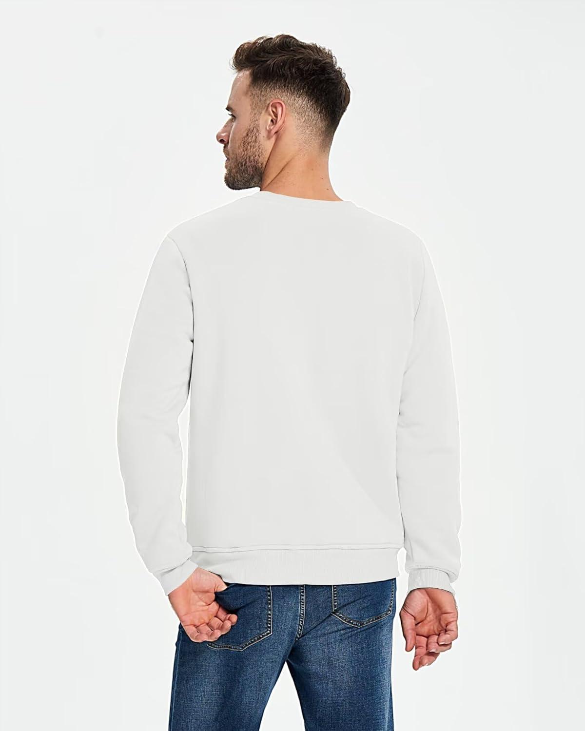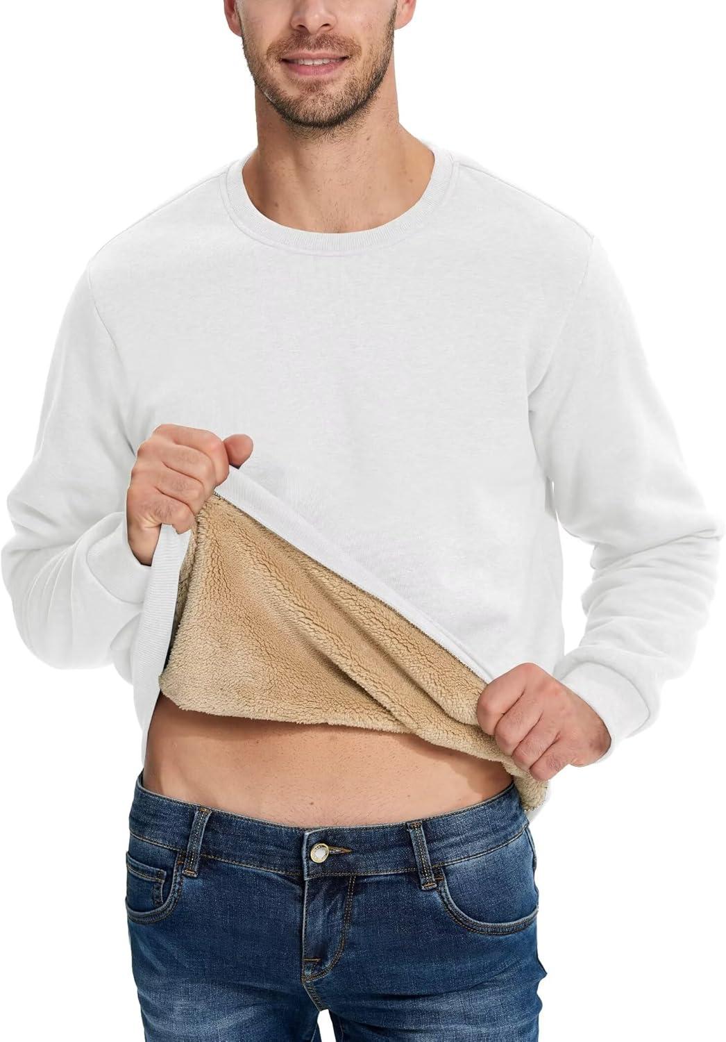Boladeci Men’s Full Sherpa Lined Crewneck Sweatshirts Heavy-weight Fleece Pullover Thick Thermal Long Sleeve Cotton(White)