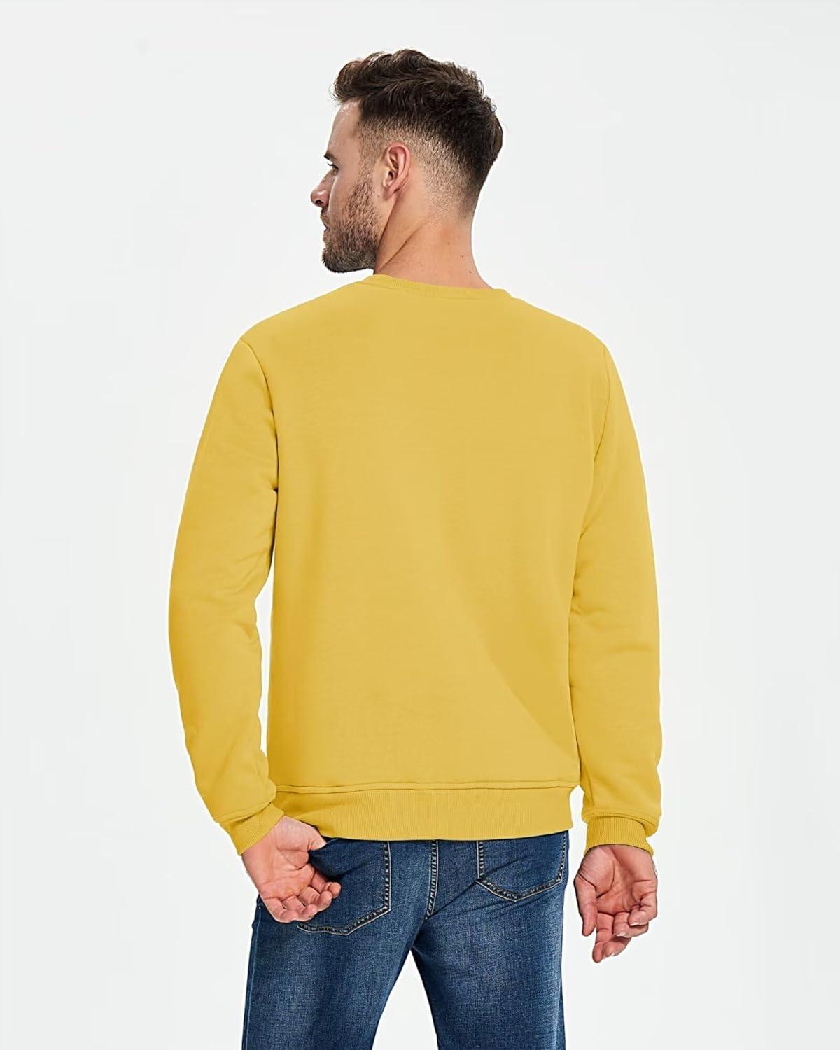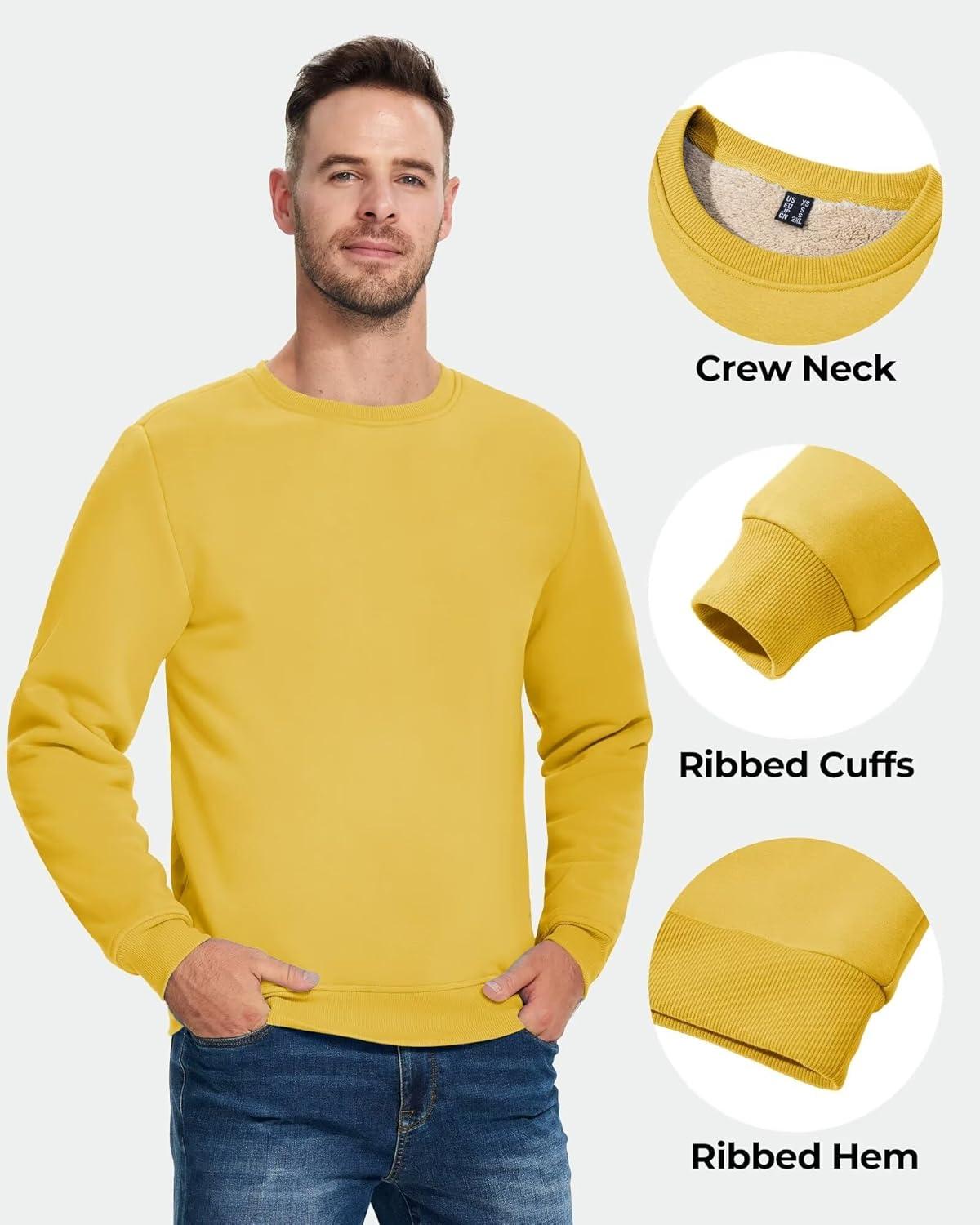 Boladeci Men’s Full Sherpa Lined Crewneck Sweatshirts Heavy-weight Fleece Pullover Thick Thermal Long Sleeve Cotton(Yellow)