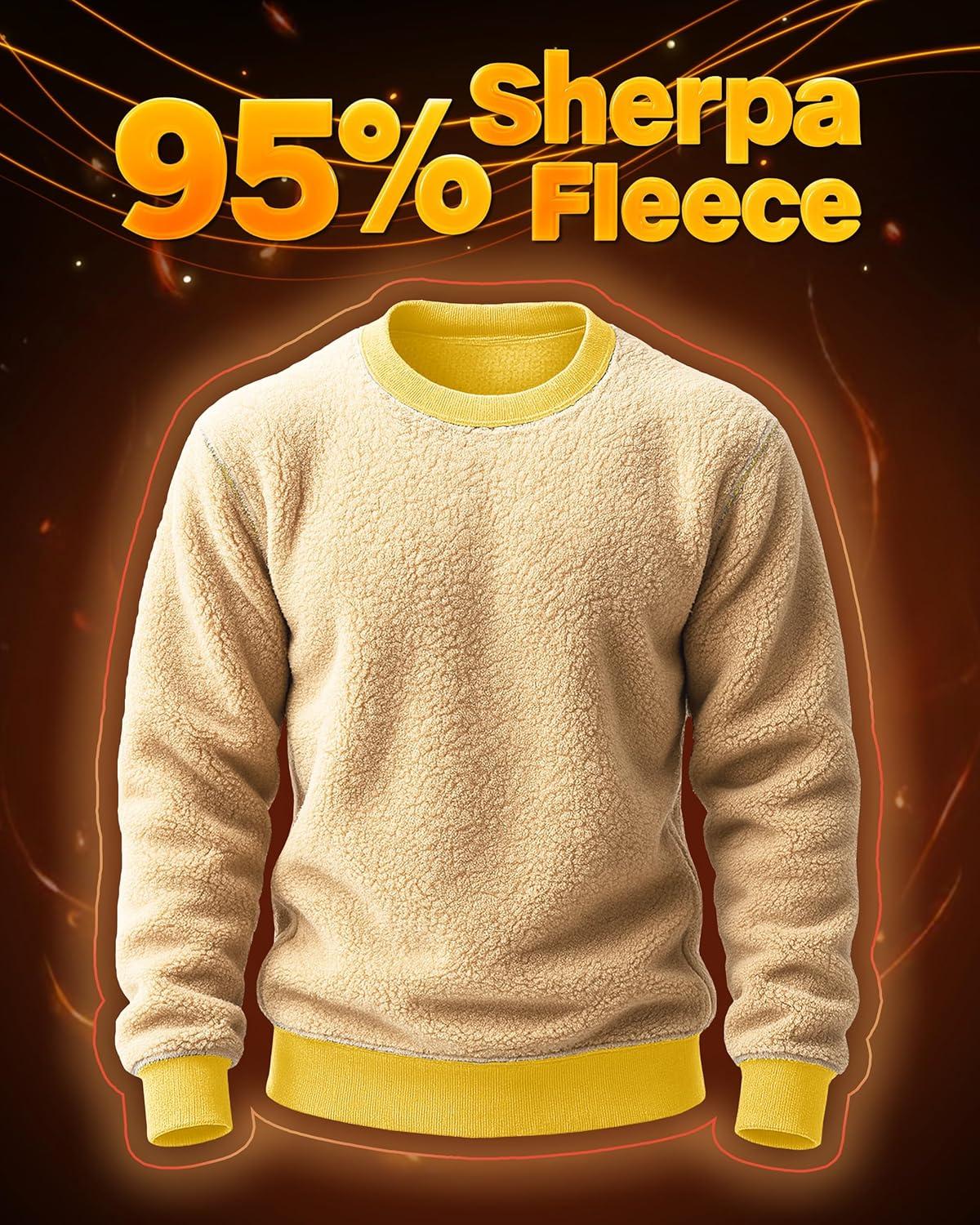 Boladeci Men's Full Sherpa Lined Crewneck Sweatshirts Heavy-weight Fleece Pullover Thick Thermal Long Sleeve Cotton(Yellow)