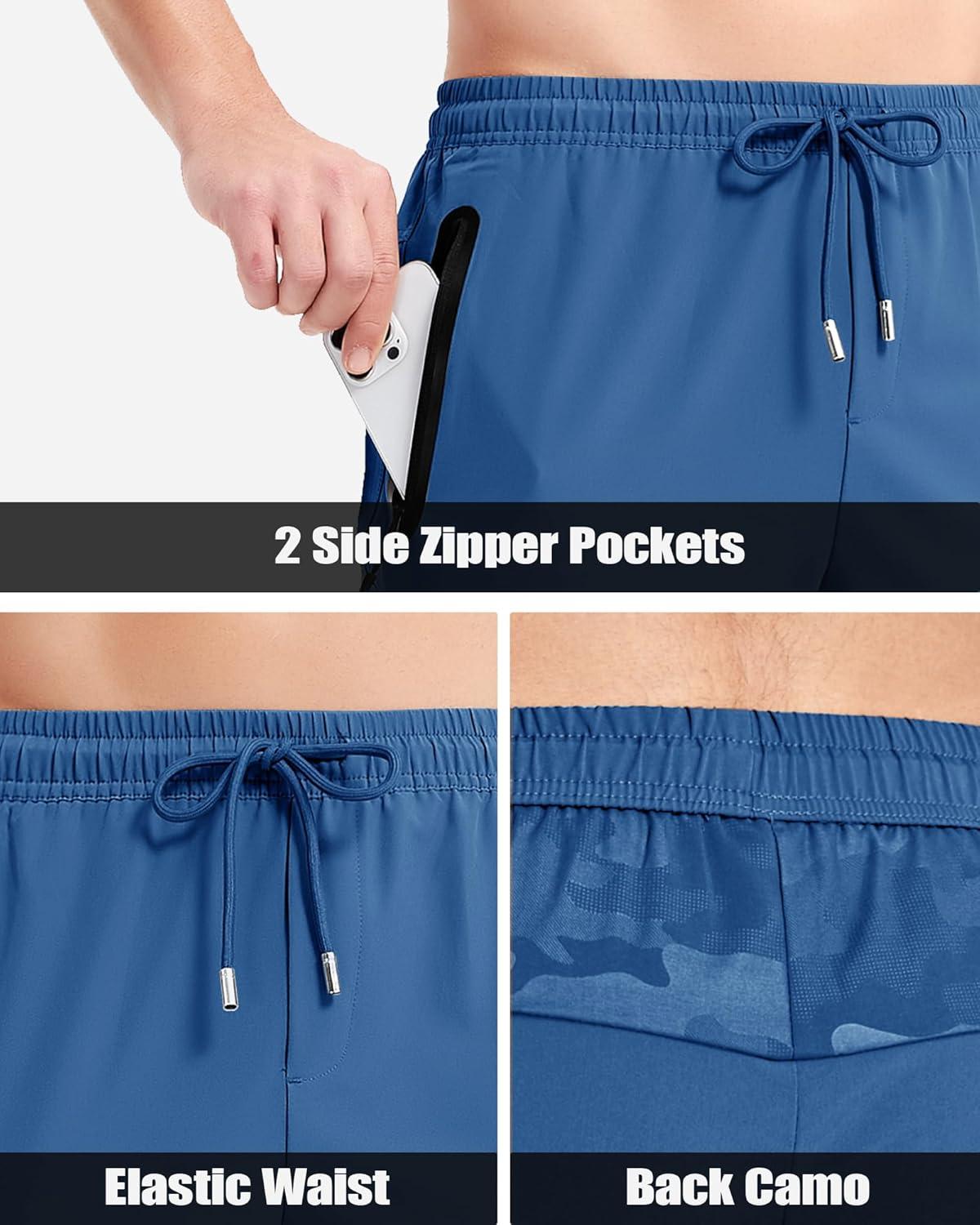 Boladeci Men's Joggers Lightweight Quick Dry Pants Athletic Hiking Workout Elastic Waist Sweatpants with Pockets(Blue)