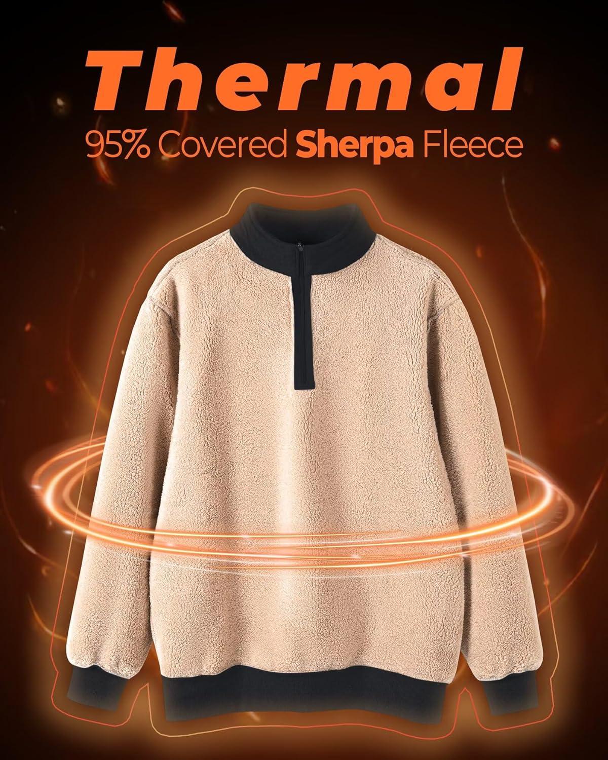 Boladeci Men's Quarter Zip Pullover Premium Sherpa Lined Sweatshirts Heavyweight Winter Cold Weather(Black)