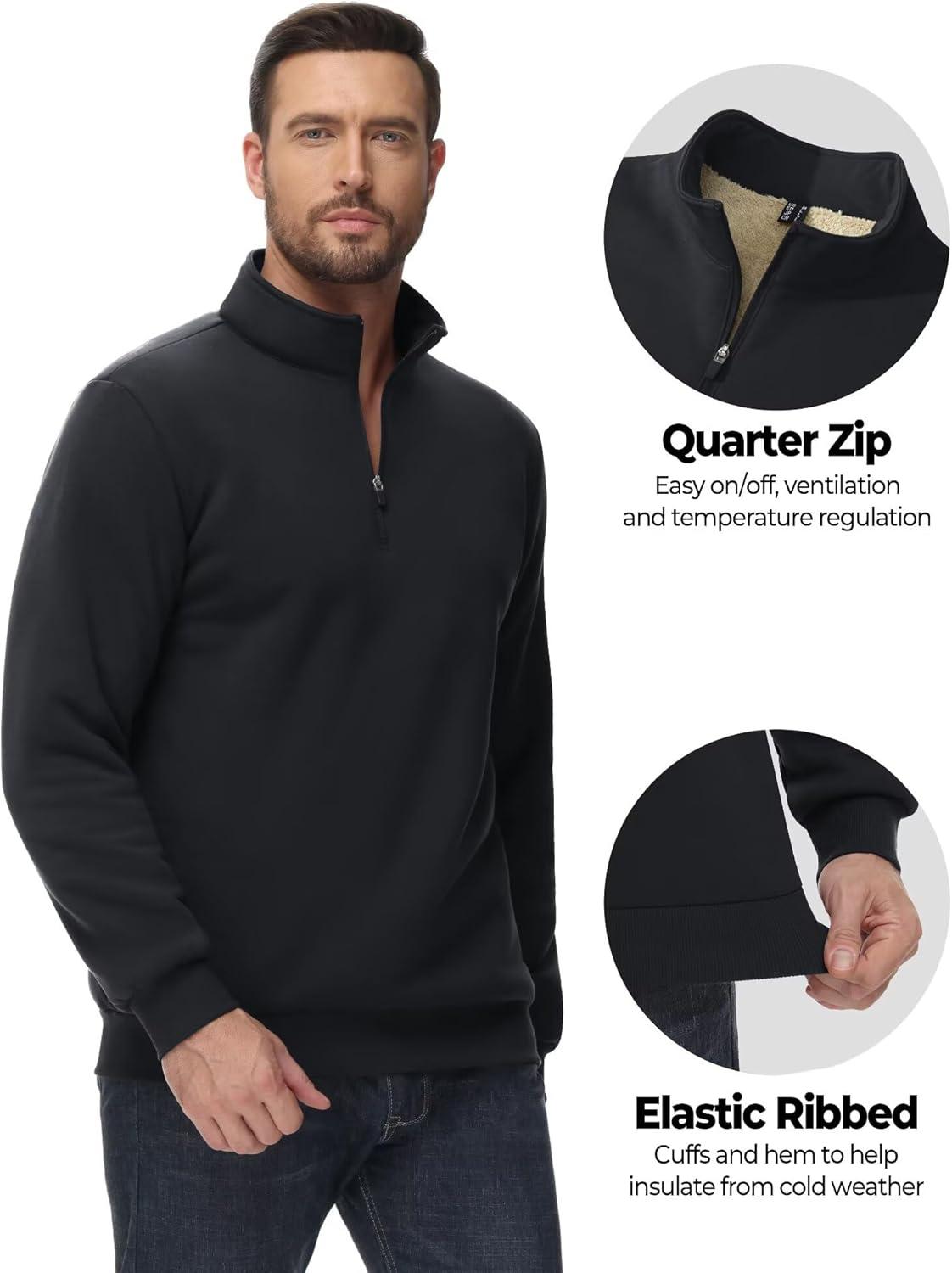 Boladeci Men’s Quarter Zip Pullover Premium Sherpa Lined Sweatshirts Heavyweight Winter Cold Weather(Black)