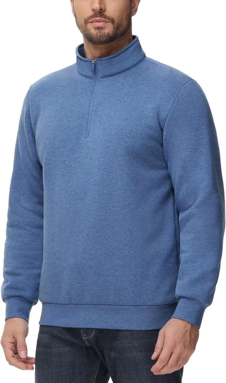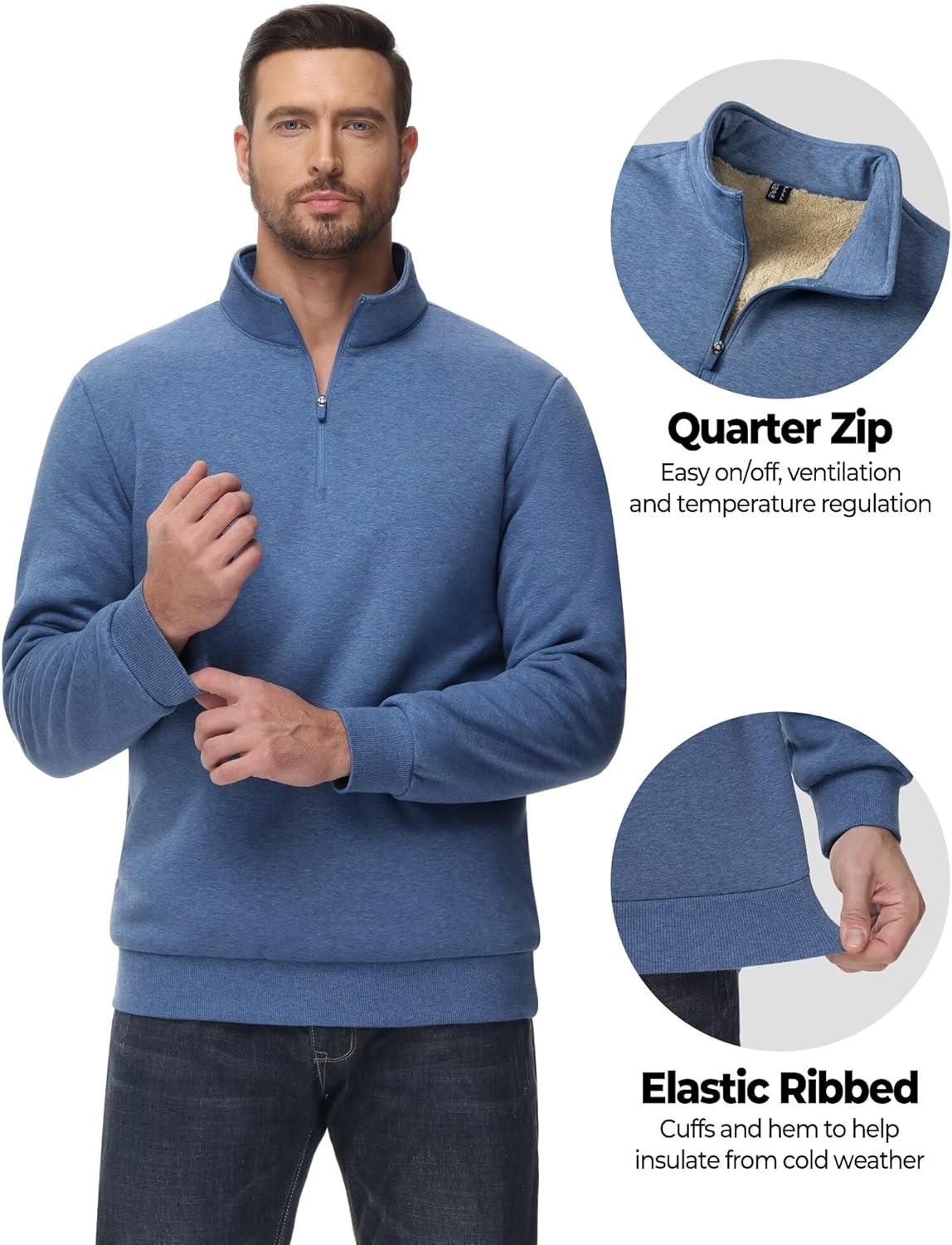 Boladeci Men’s Quarter Zip Pullover Premium Sherpa Lined Sweatshirts Heavyweight Winter Cold Weather(Blue Grey)