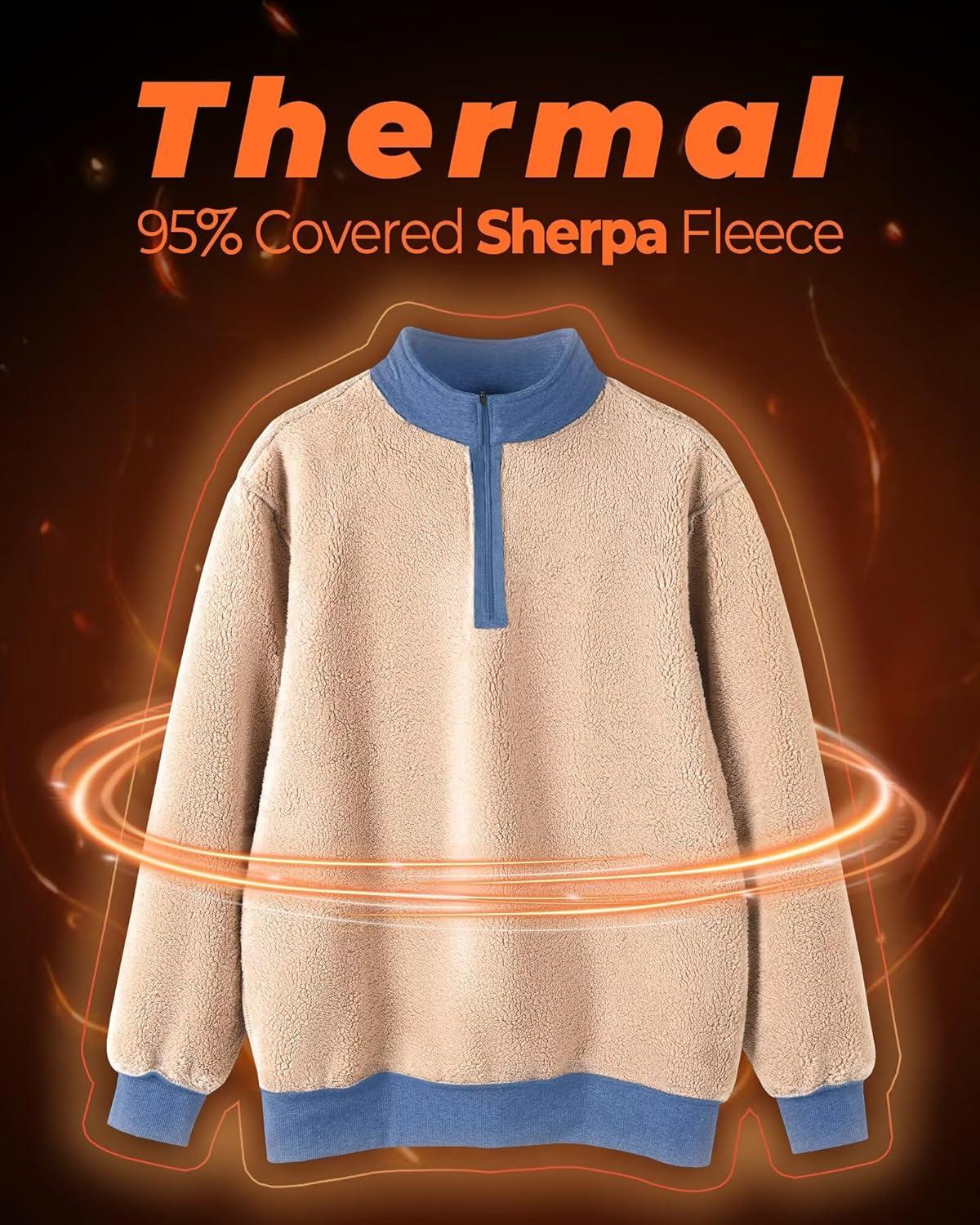 Boladeci Men's Quarter Zip Pullover Premium Sherpa Lined Sweatshirts Heavyweight Winter Cold Weather(Blue Grey)
