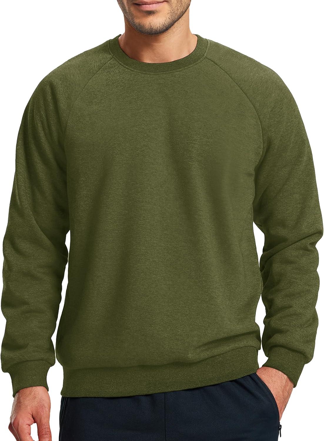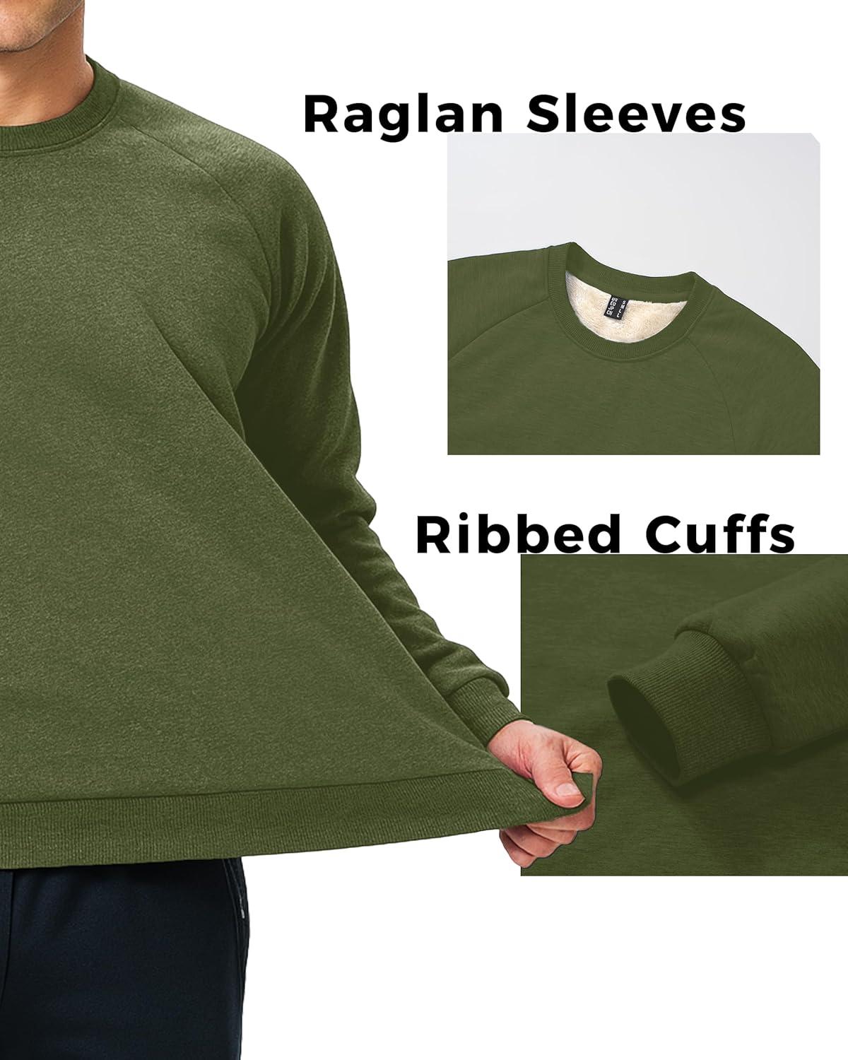 Boladeci Men’s Sherpa Lined Crewneck Sweatshirt Heavy-weight Thick Cotton Winter Warm Fleece Pullover Shirts(Army Green)