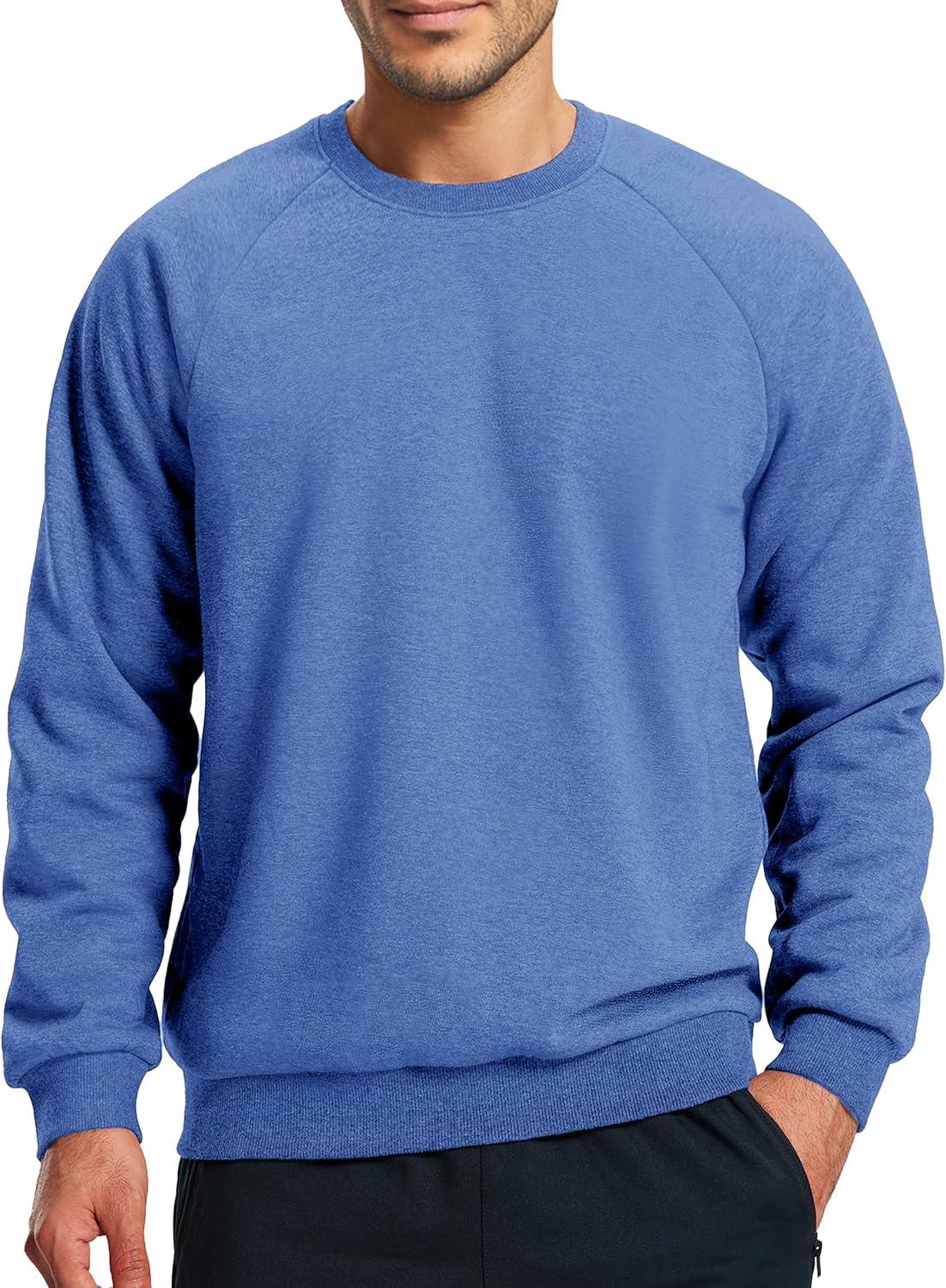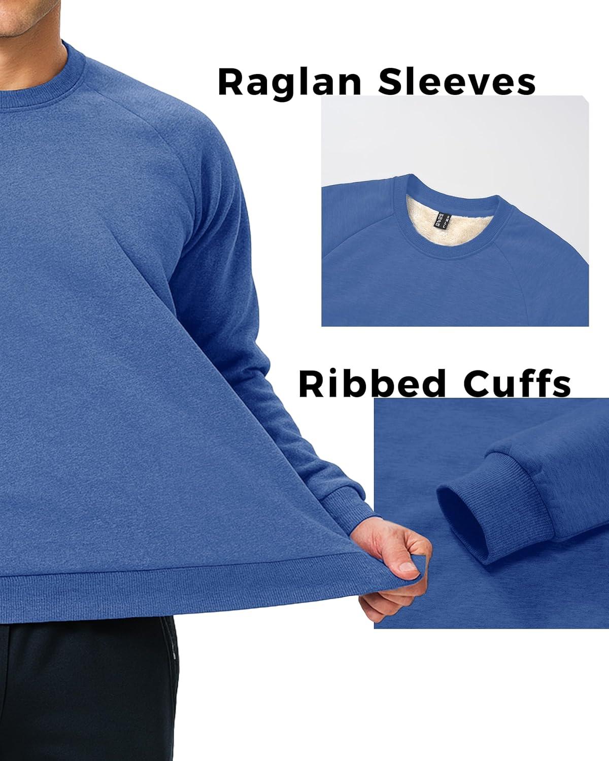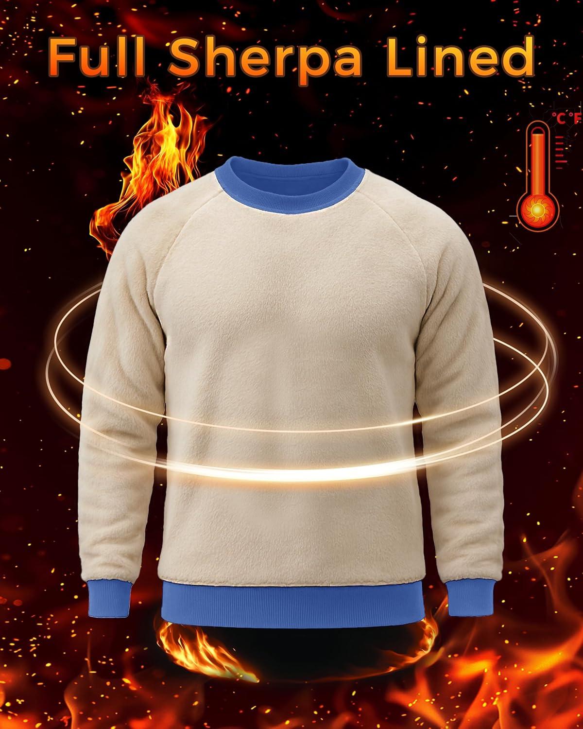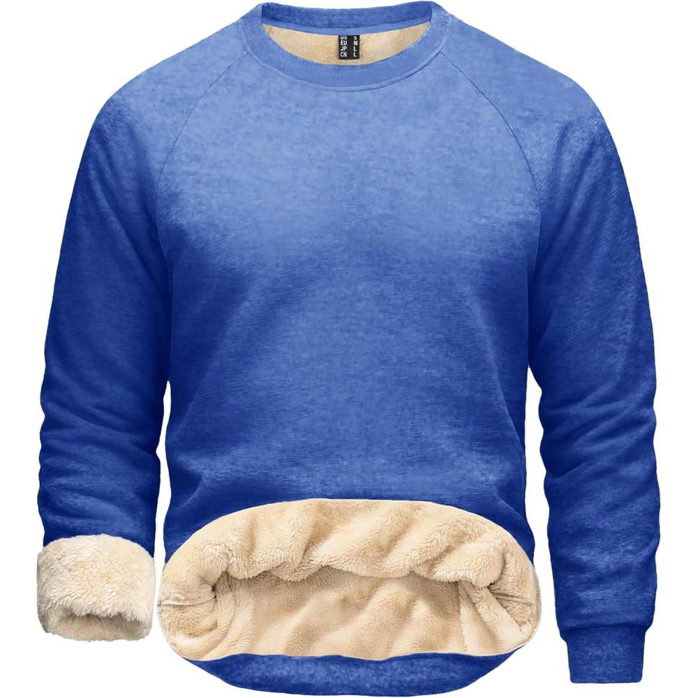 Boladeci Men’s Sherpa Lined Crewneck Sweatshirt Heavy-weight Thick Cotton Winter Warm Fleece Pullover Shirts(Heather Blue)