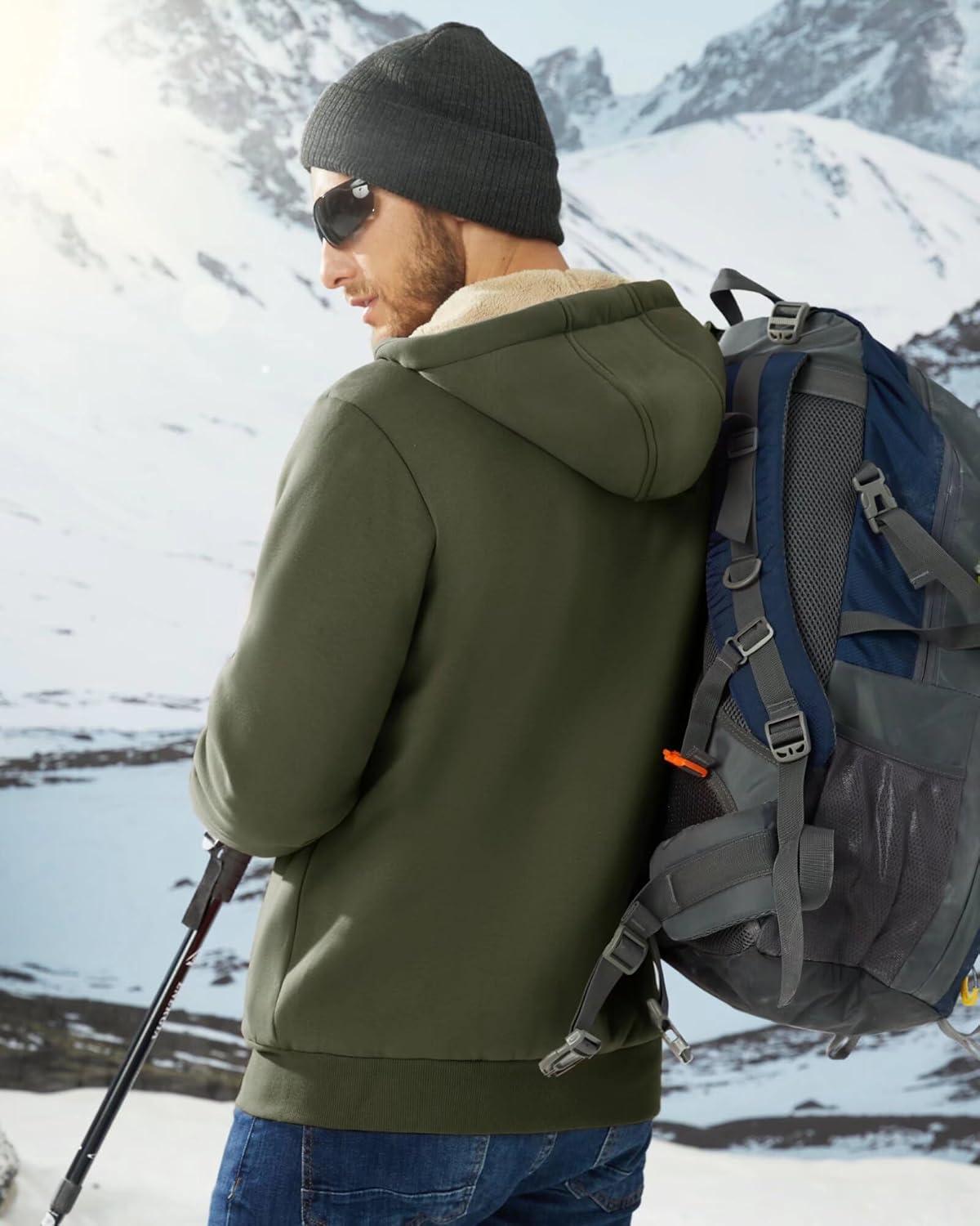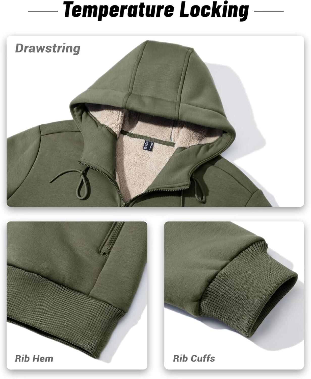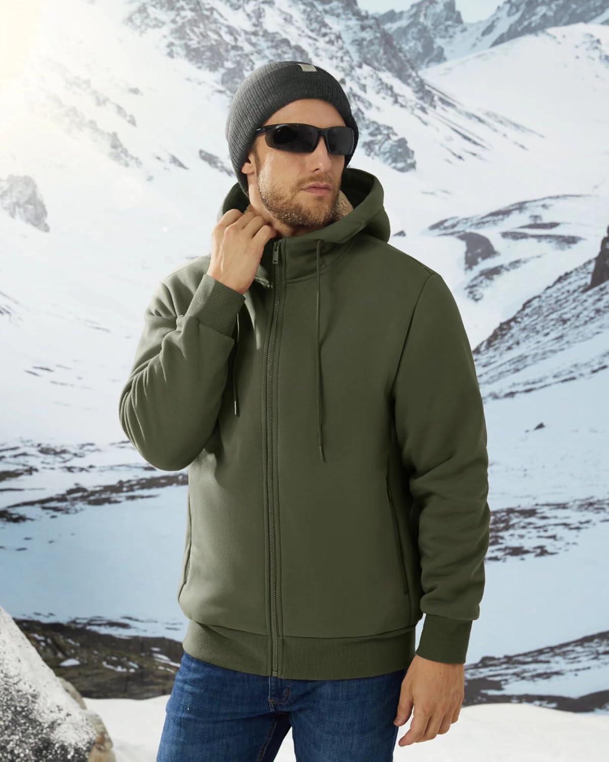 Boladeci Men’s Sherpa Lined Hoodie Jacket Winter Warm Heavy Weight Zip Up Hooded Sweatshirt Thick Fleece Coats(Army Green)