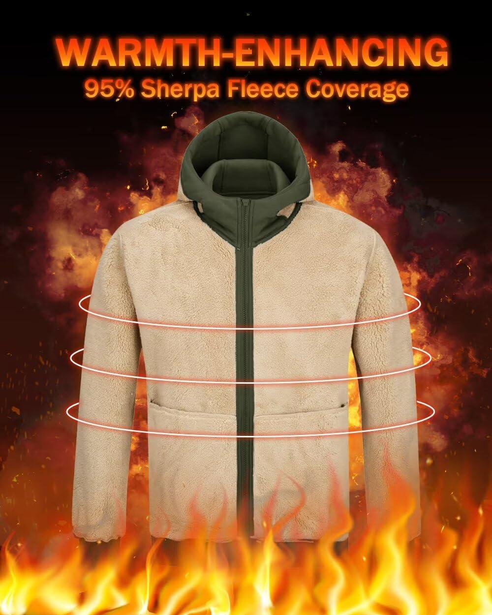 Material Shell: 95% Cotton + 5% Spandex Lining: 100% Polyester sherpa fleece, providing warm insulation and comfort Fabric Features This men’s sherpa lined hoodie is made with heavyweight fleece, offering warmth, flexibility, and a soft touch. The thermal fabric has breathability and stretch, making it comfortable for cold weather and daily wear. Seasons Suitable for fall, winter, and early spring. Keeps you warm during outdoor activities such as hiking, traveling, camping, or work in chilly conditions. Design Style Features sherpa fleece lining, long sleeve build, full zippered front closure, rib-knit cuffs and hem, and an adjustable hood. The insulated design with thick lining provides reliable heat retention, suitable as a fleece jacket or sweatshirt for casual and outdoor use. Care Machine wash or hand wash; do not bleach. Tumble dry low or hang dry. Cool iron if needed. Occasion A practical men’s fleece hoodie designed for versatile use—works well for casual outings, work, or outdoor activities such as hiking, camping, and traveling. Functional details include inside pockets and side zippered pockets to keep small items secure. Note Colors may vary slightly due to monitor settings.