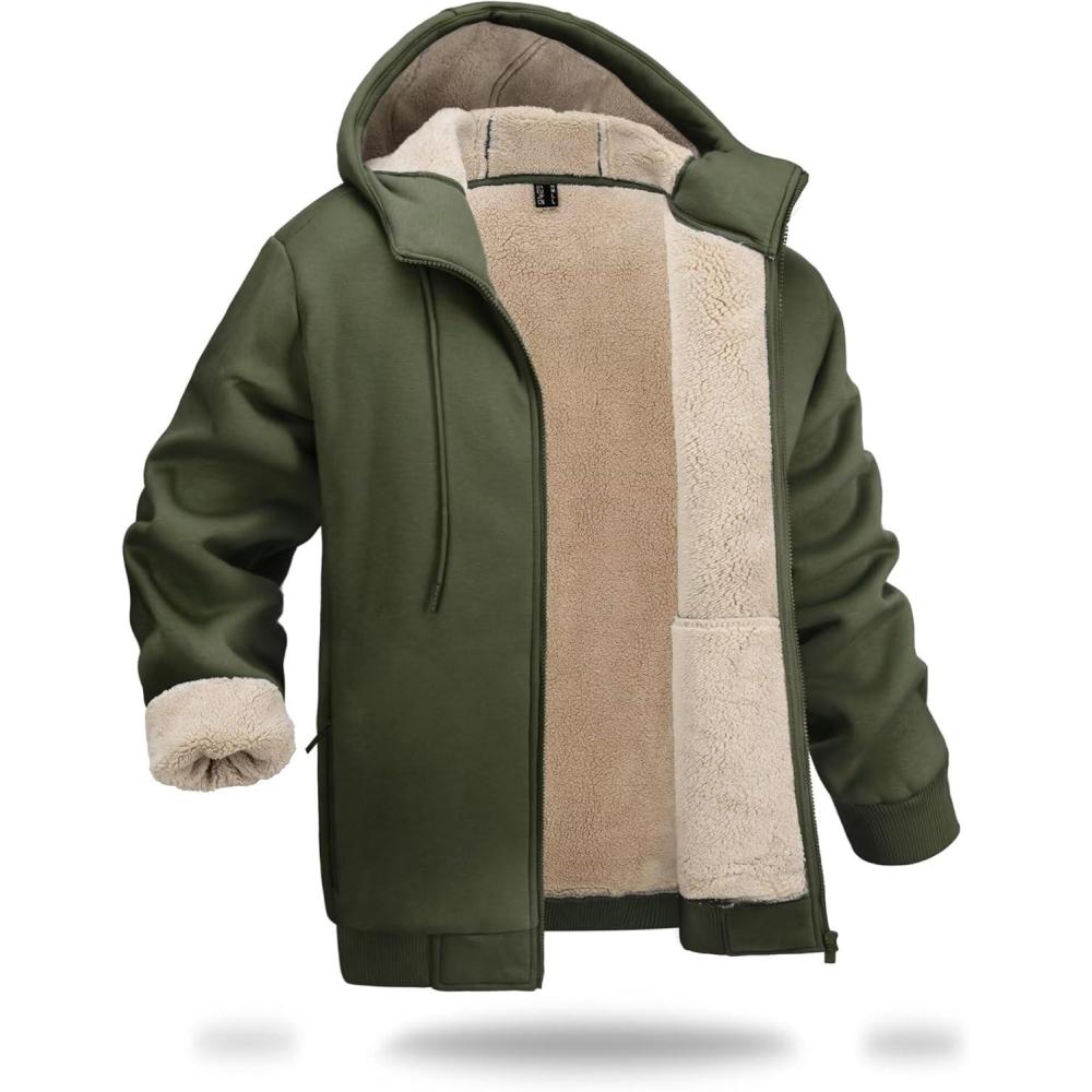 Boladeci Men's Sherpa Lined Hoodie Jacket Winter Warm Heavy Weight Zip Up Hooded Sweatshirt Thick Fleece Coats(Army Green)