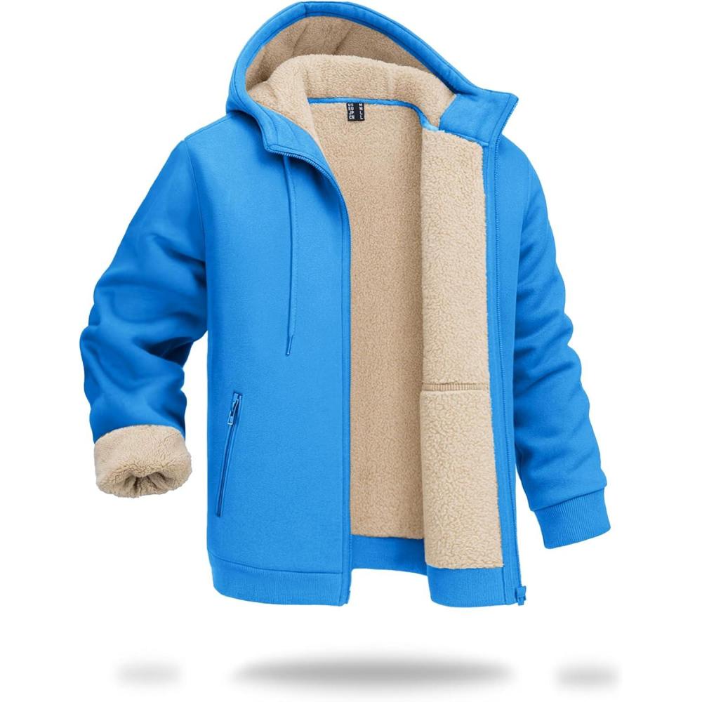 Boladeci Men's Sherpa Lined Hoodie Jacket Winter Warm Heavy Weight Zip Up Hooded Sweatshirt Thick Fleece Coats(Blue)