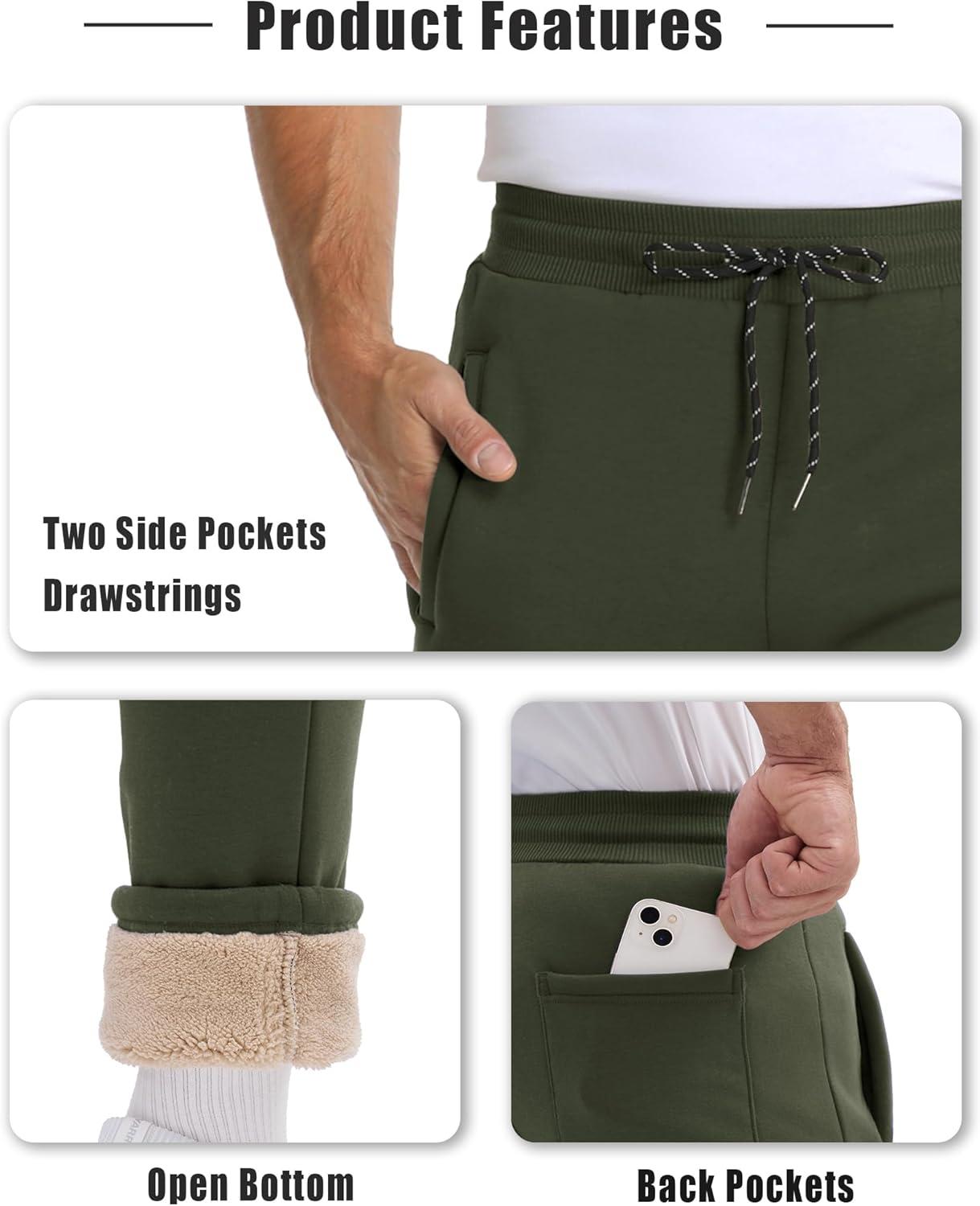 Boladeci Men’s Sherpa Lined Sweatpants Heavyweight Fleece Lined Sweat Pants Joggers for Winter Cold Weather(Army Green)