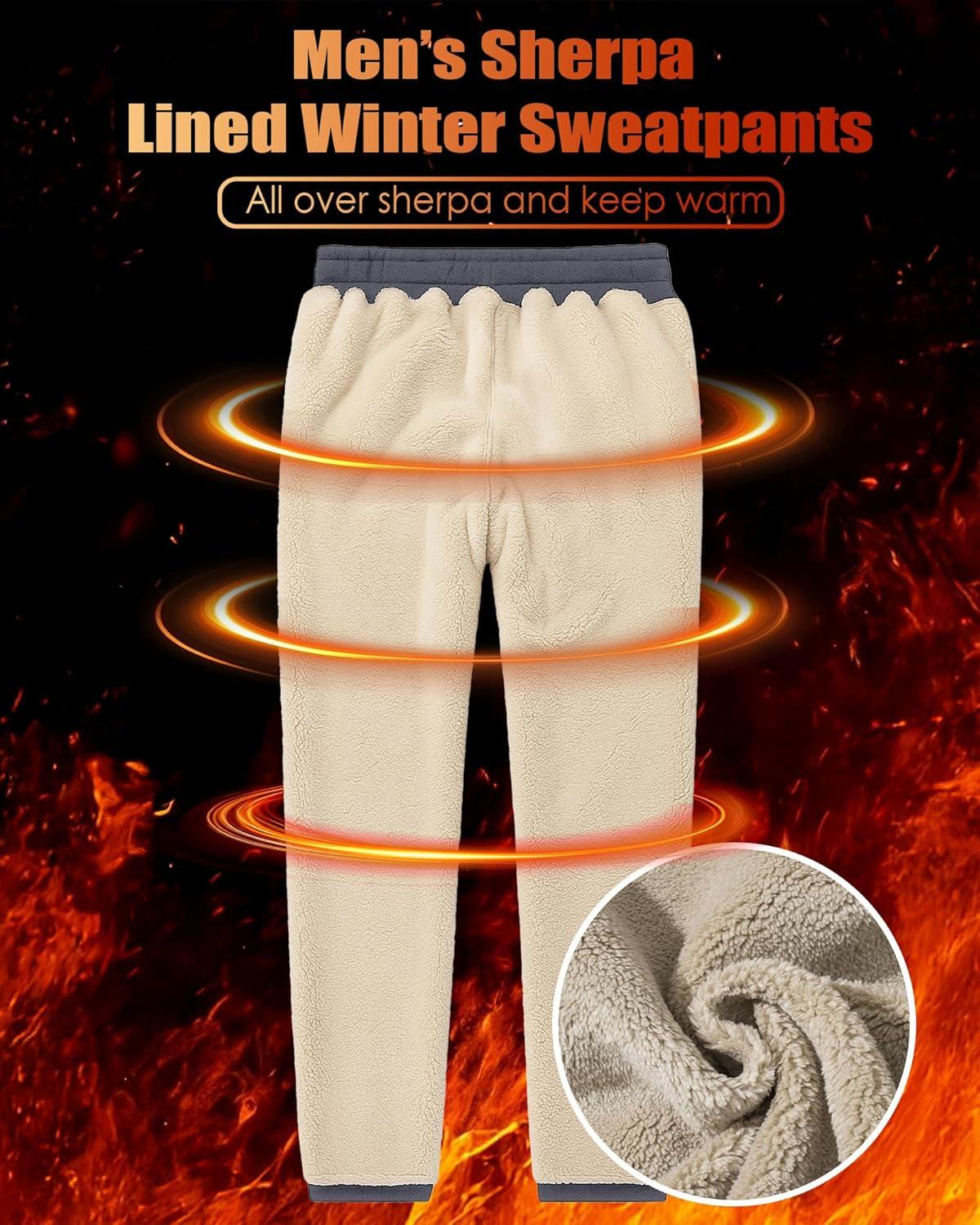 Boladeci Men's Sherpa Lined Pants – Heavyweight Sherpa Fleece, Elastic Drawstring, and Side Pockets for Winter Wear Material: Shell: 95% Cotton + 5% Spandex Lining: 100% Polyester Fabric Features: Soft Fleece: Sherpa lined provides warmth, suitable for cold weather. Comfortable Wear: The fabric is gentle on the skin, ensuring all-day wear without discomfort. Heavyweight Fabric: Provides insulation for cold weather. Design Features: Sherpa Lining: Plush Sherpa lining adds warmth and keeps you comfortable in cold conditions. 4-Way Stretch: Spandex provides flexibility and a comfortable fit. Two Side Pockets: Convenient side pockets to store essentials like keys and phone. Easy Care:Machine washable and easy to maintain. Additional Style Features: Heavyweight, Warm, Soft, Breathable, Relaxed Fit, Classic Look. Suitable For: Men, adults, teens, college students, athletes, outdoor enthusiasts, office workers, travelers, commuters, seniors, hikers, campers, joggers, fishermen, boyfriends, and sports fans. Care: Machine wash or hand wash, do not bleach, tumble dry. Cool ironed. Occasions: Ideal for casual, leisure, and outdoor activities like hiking, camping, traveling, jogging, and walking. Also suitable for sports events, running errands, lounging at home, weekend getaways, family gatherings, and winter commutes.