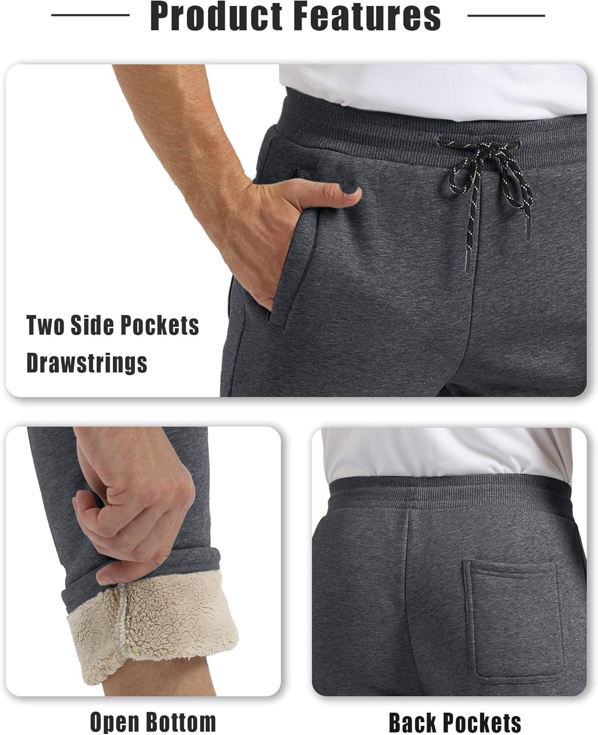Boladeci Men’s Sherpa Lined Sweatpants Heavyweight Fleece Lined Sweat Pants Joggers for Winter Cold Weather(Dark Gray)