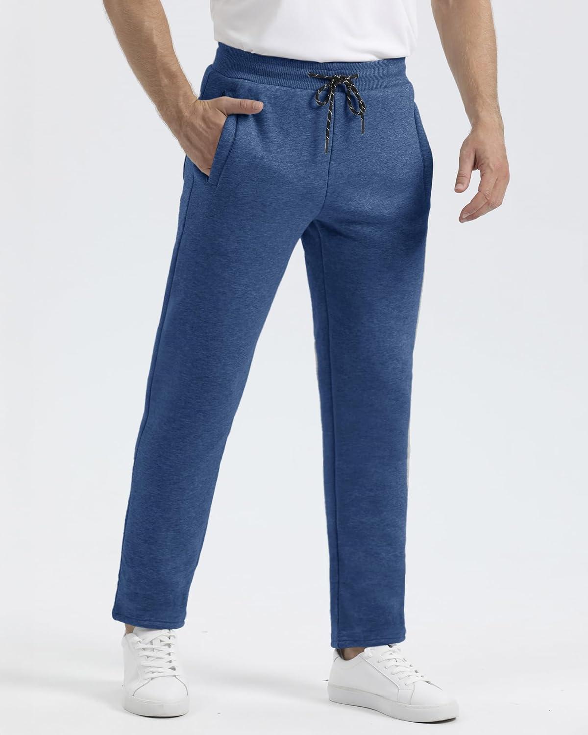 Boladeci Men’s Sherpa Lined Sweatpants Heavyweight Fleece Lined Sweat Pants Joggers for Winter Cold Weather(Gray Blue)