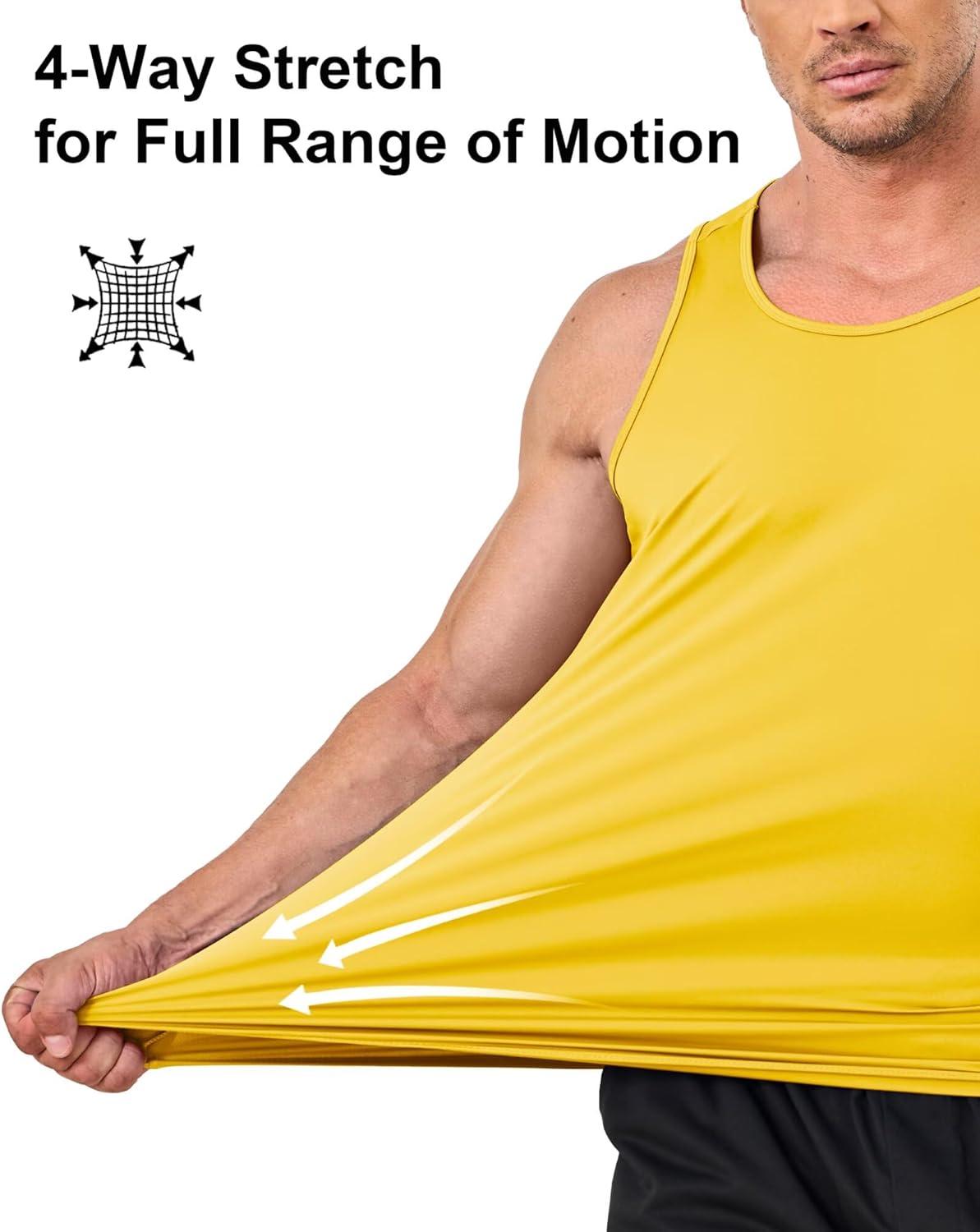 Boladeci Men's Tank Top Workout Athletic Quick Dry UPF 50+ Sun Protection Lightweight Summer Beach Gym Sleeveless Shirts(Yellow)