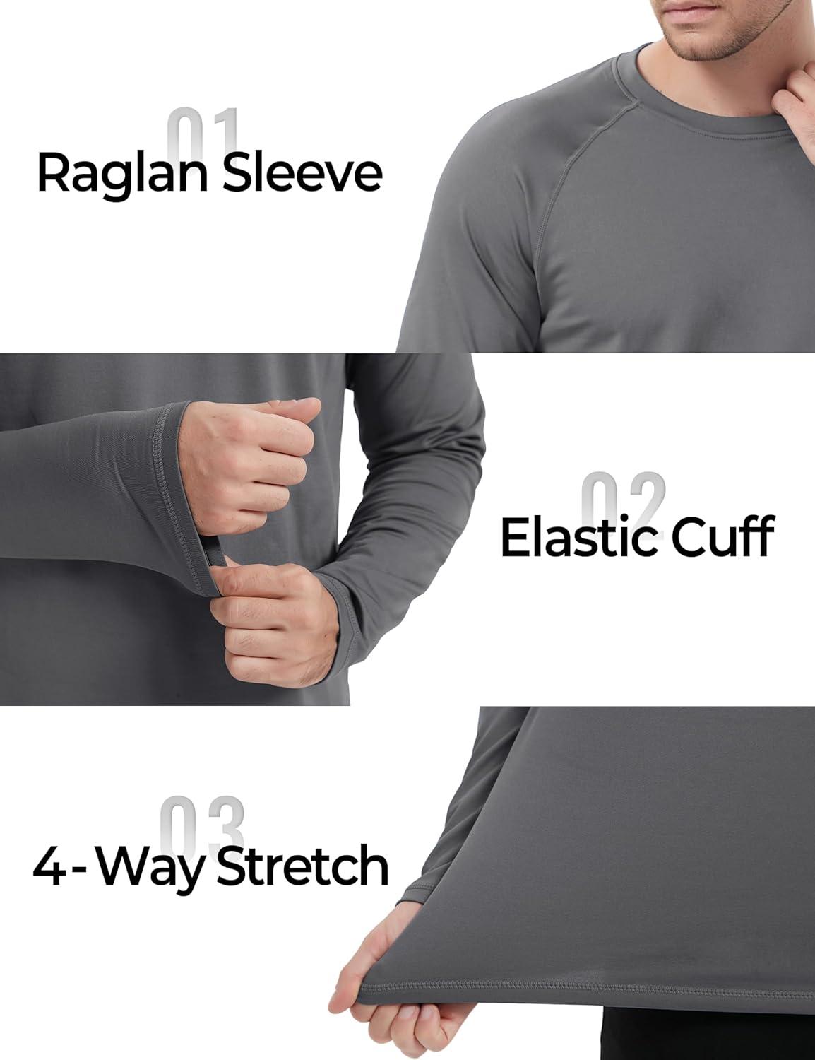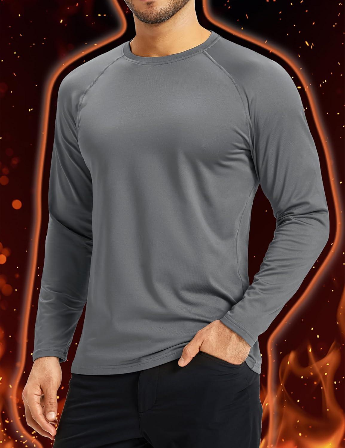 Boladeci Men's Thermal Underwear Tops Fleece Lined Base Layer Long Sleeve Shirts for Cold Weather(Dark Gray)