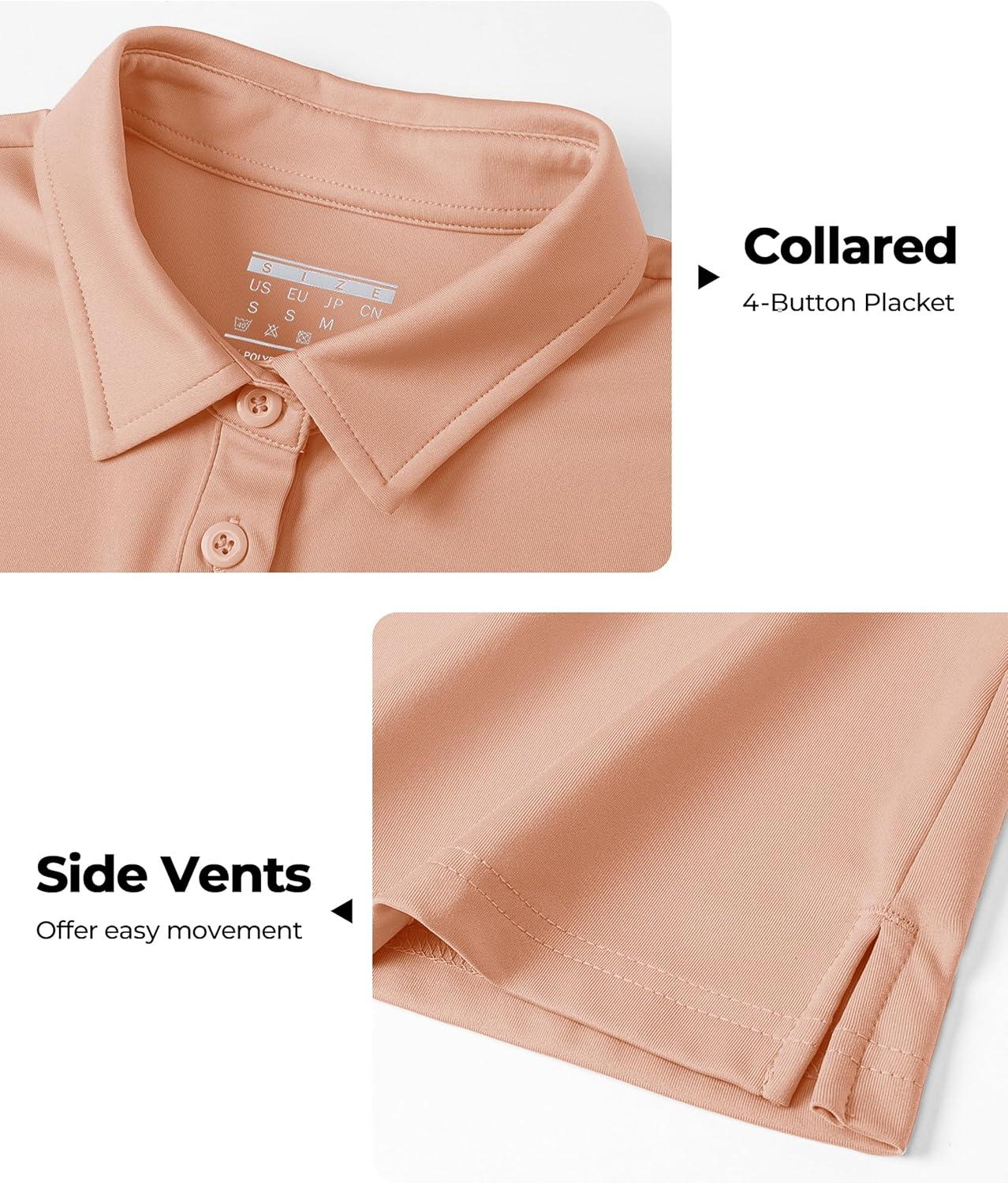 Boladeci Women’s Golf Polo Shirts Short Sleeve UPF 50+ Sun Protection 4-Button Tennis Collared Shirts(Apricot)