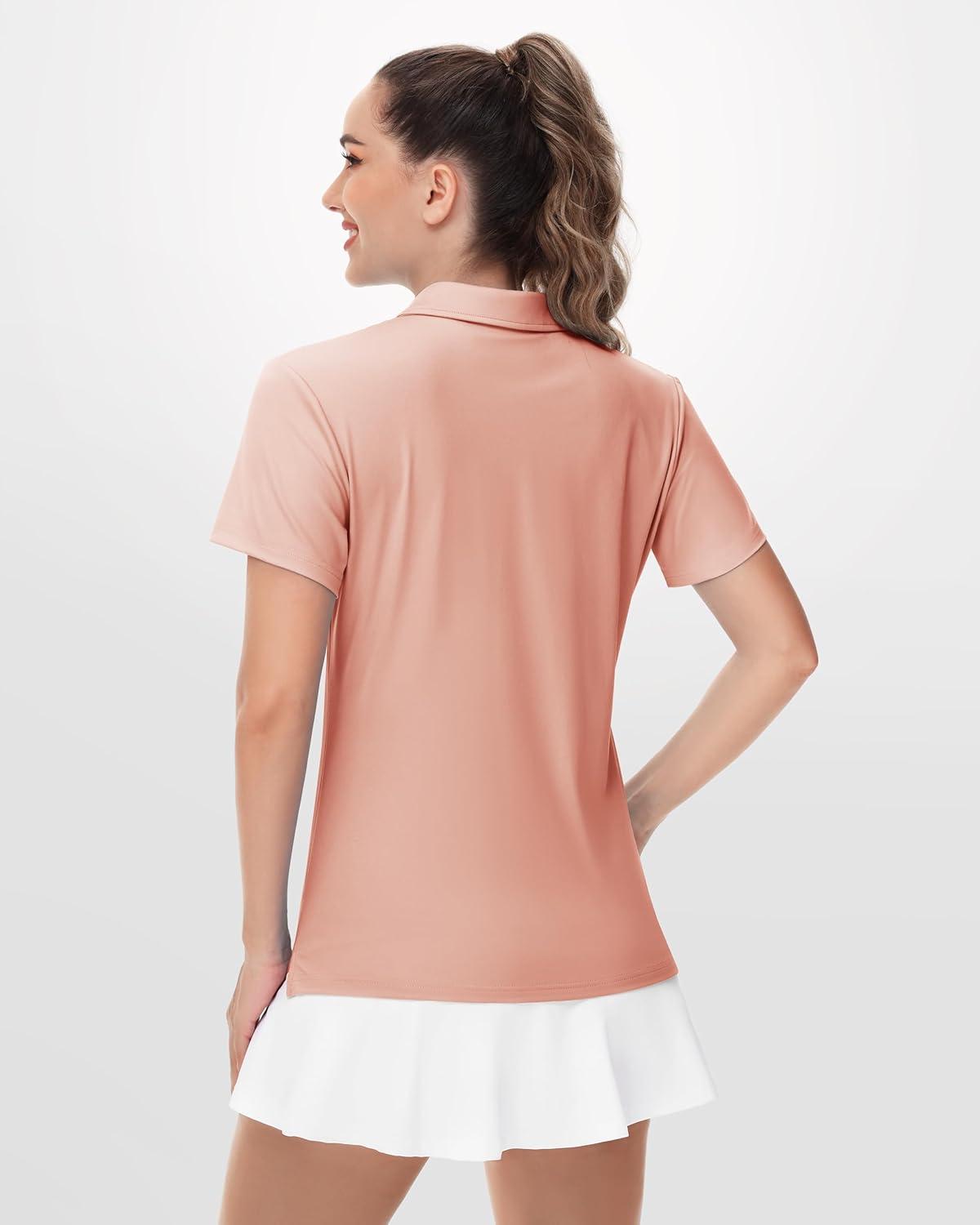 Boladeci Women’s Golf Polo Shirts Short Sleeve UPF 50+ Sun Protection 4-Button Tennis Collared Shirts(Rose)