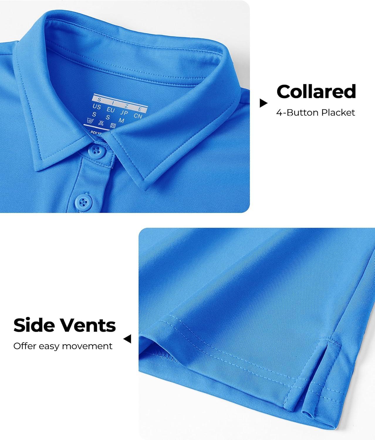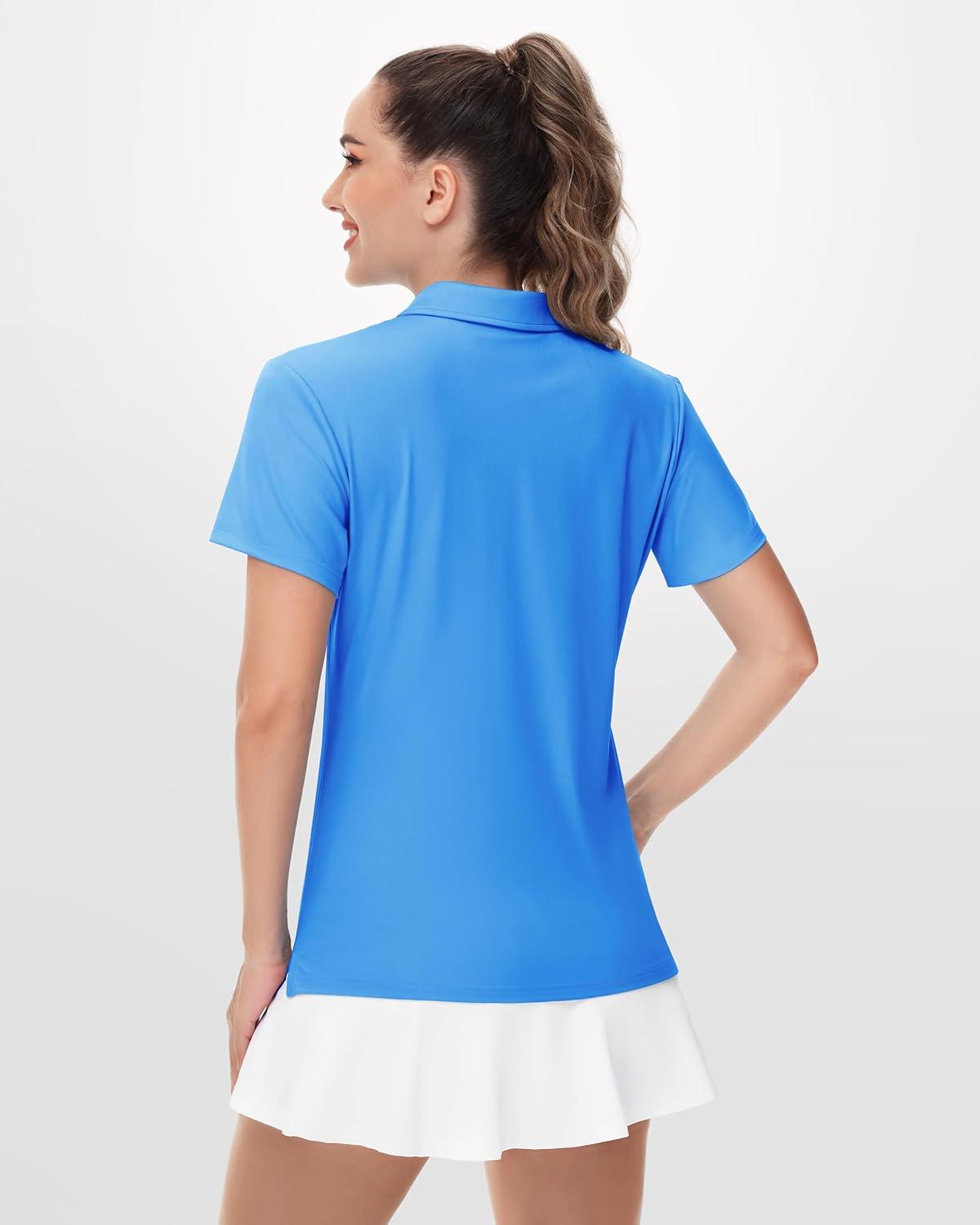 Boladeci Women’s Golf Polo Shirts Short Sleeve UPF 50+ Sun Protection 4-Button Tennis Collared Shirts(Azure)