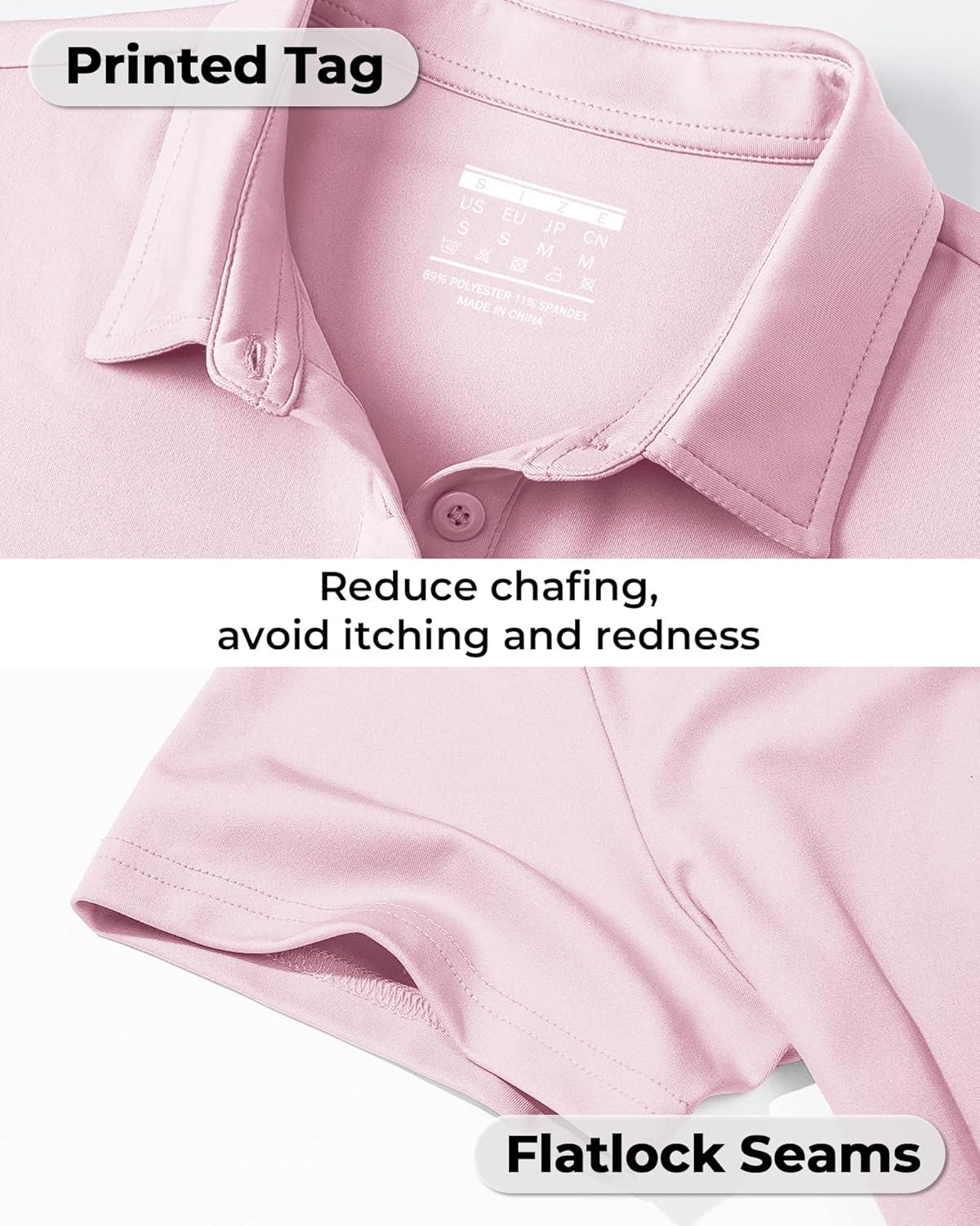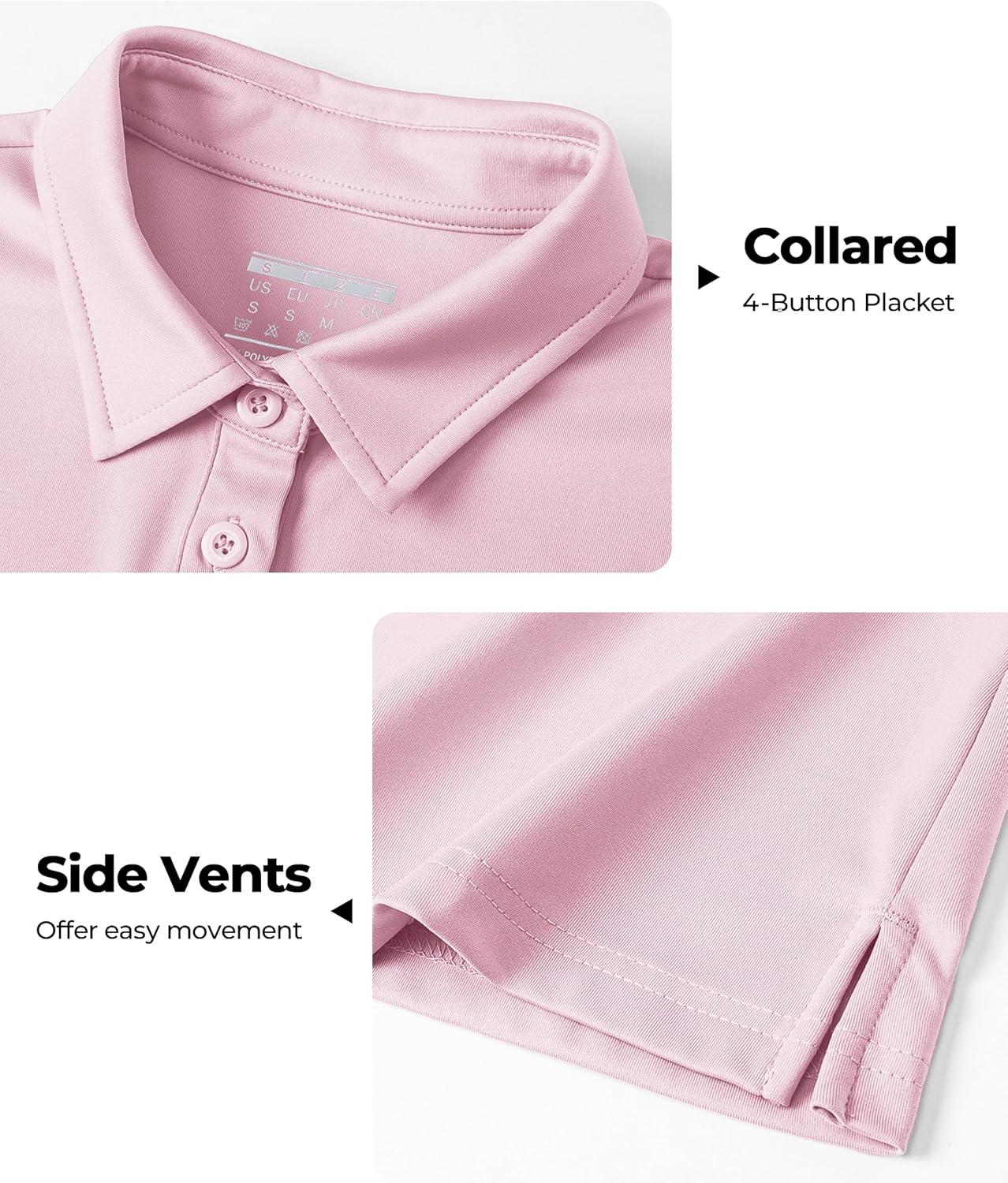 Boladeci Women’s Golf Polo Shirts Short Sleeve UPF 50+ Sun Protection 4-Button Tennis Collared Shirts(Lightpink)