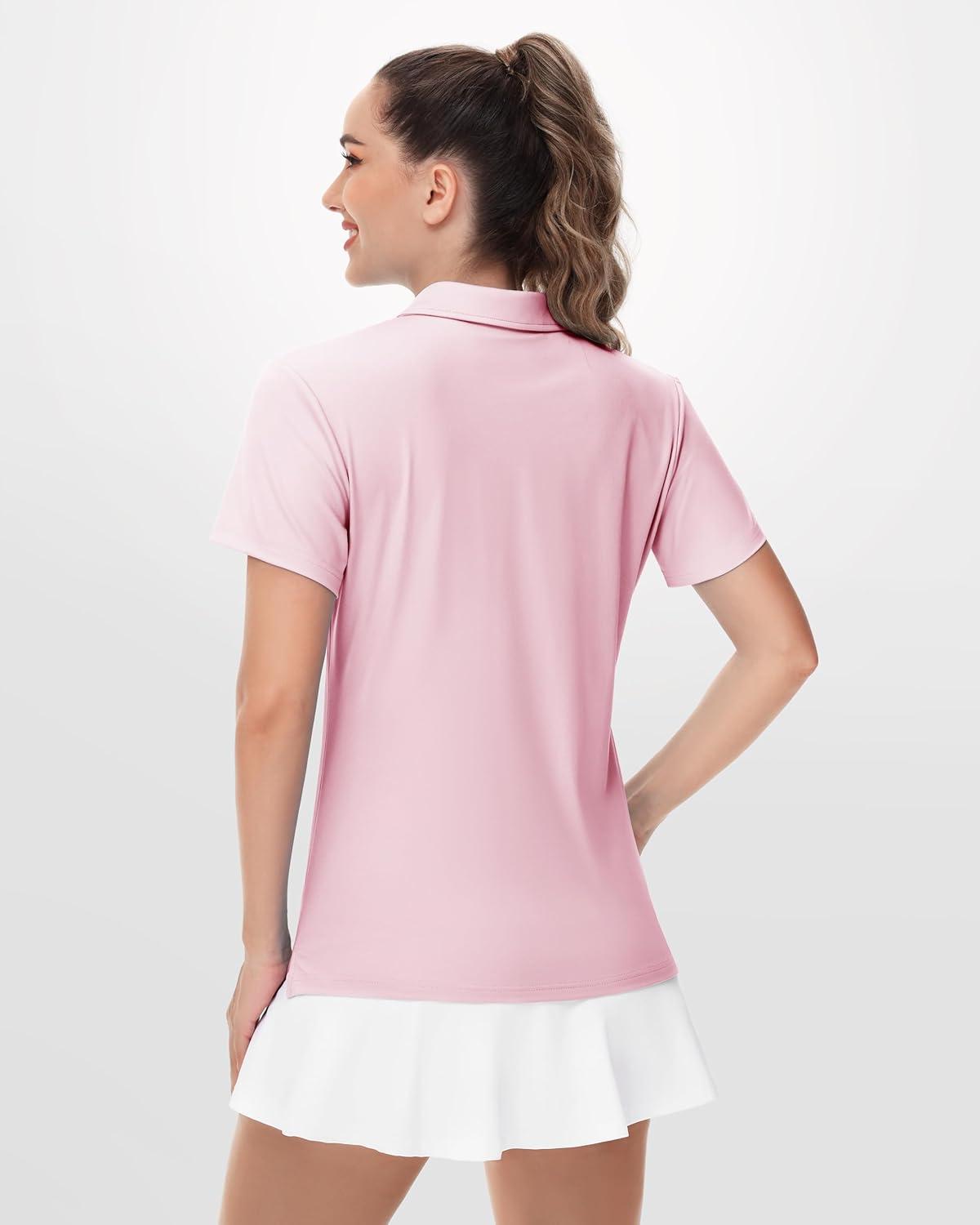 Boladeci Women's Golf Polo Shirts Short Sleeve UPF 50+ Sun Protection 4-Button Tennis Collared Shirts(Lightpink)
