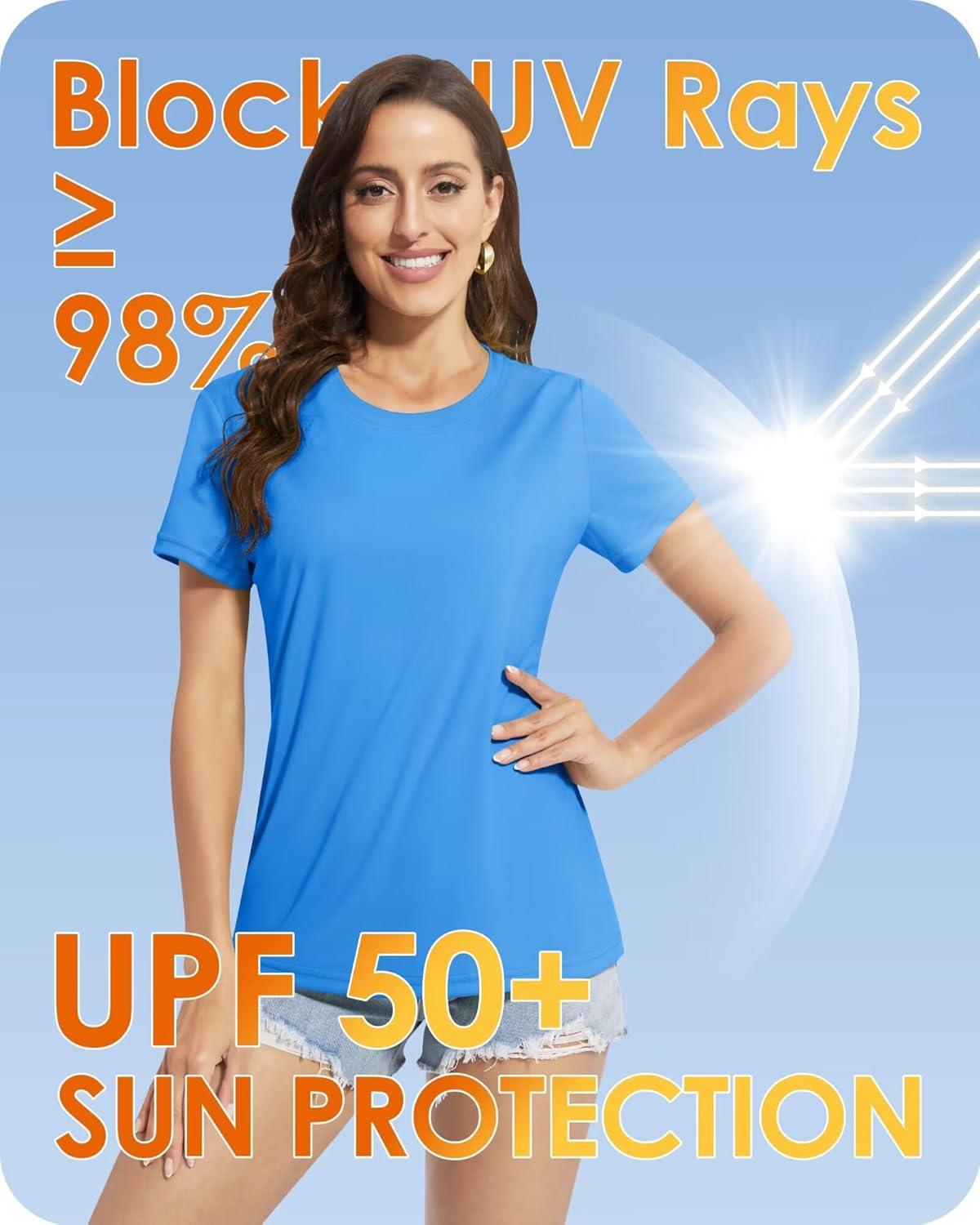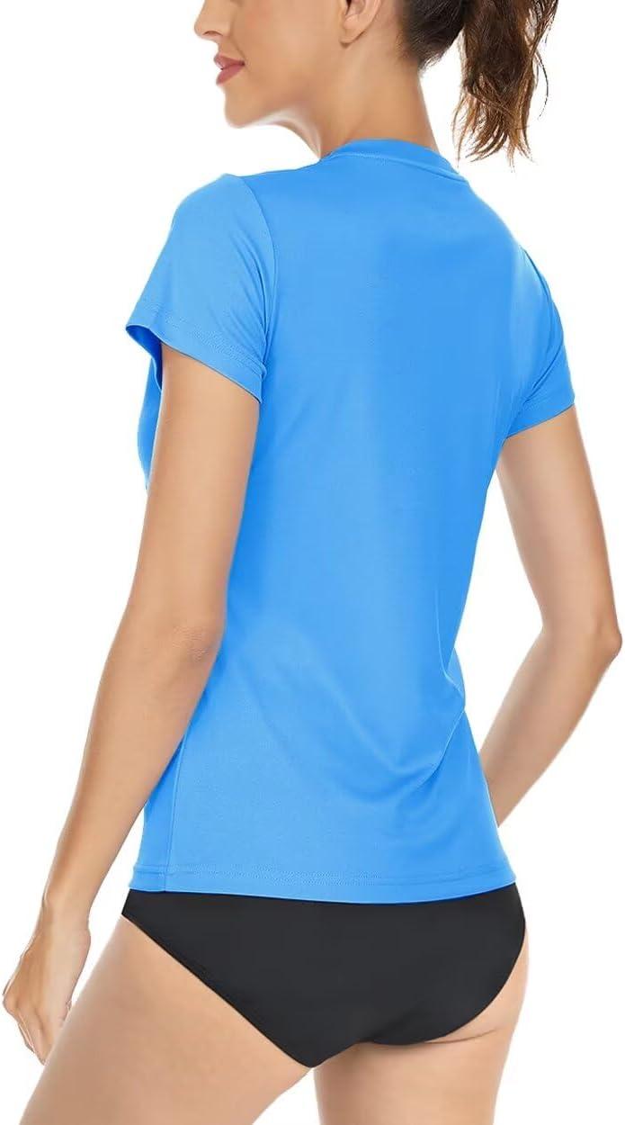 Boladeci Women's Sun Shirts UPF 50+ UV Protection Short Sleeve Rash Guard Quick Dry Lightweight Top T-Shirts Swim Shirts(Blue)