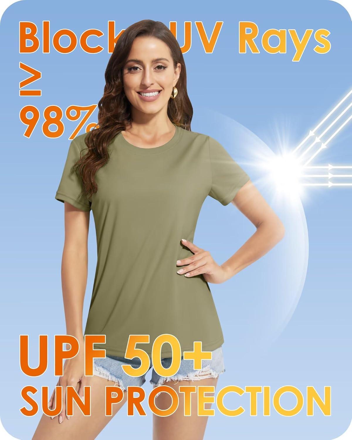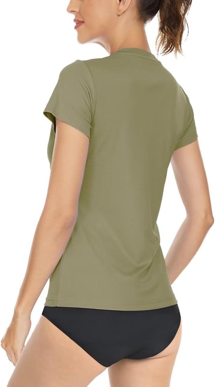 Boladeci Women's Sun Shirts UPF 50+ UV Protection Short Sleeve Rash Guard Quick Dry Lightweight Top T-Shirts Swim Shirts(Dull Green)