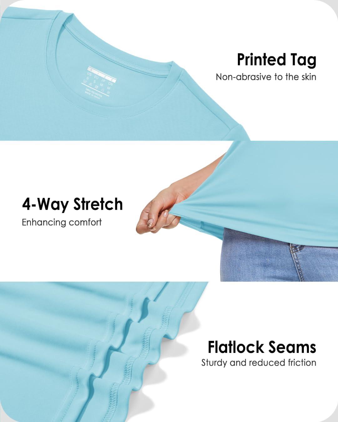 Boladeci Women’s Sun Shirts UPF 50+ UV Protection Short Sleeve Rash Guard Quick Dry Lightweight Top T-Shirts Swim Shirts(Ice Blue)