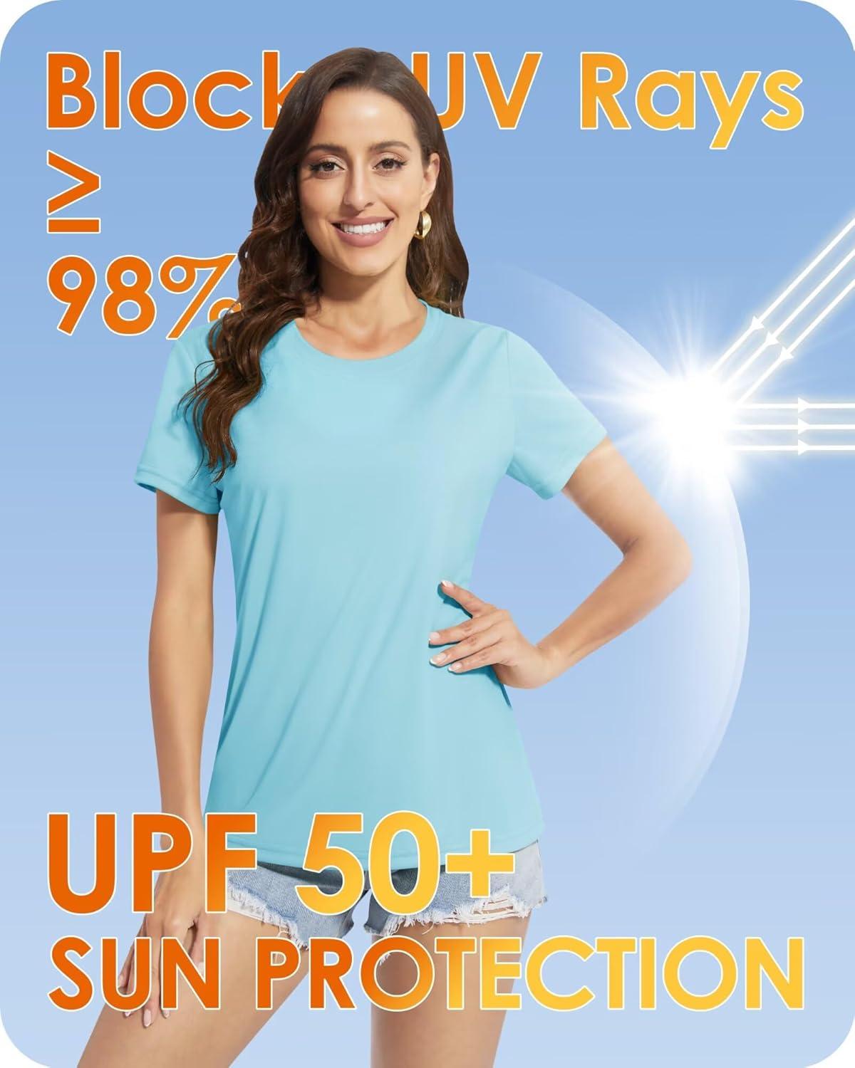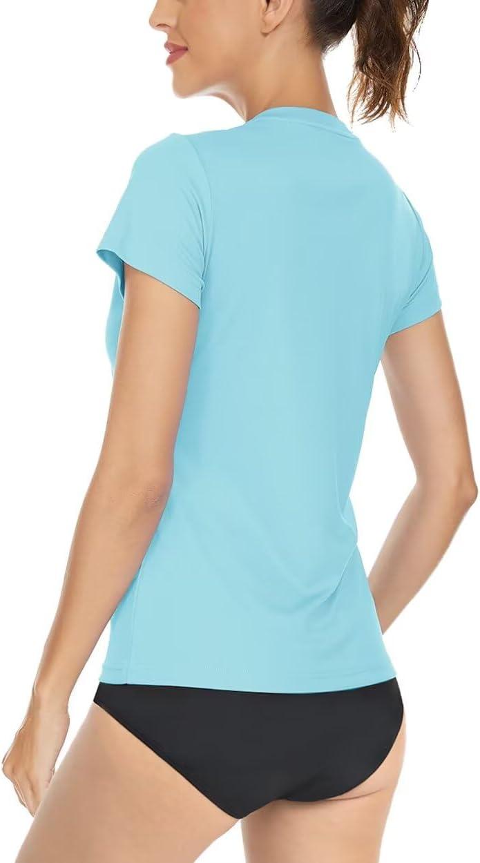 Boladeci Women's Sun Shirts UPF 50+ UV Protection Short Sleeve Rash Guard Quick Dry Lightweight Top T-Shirts Swim Shirts(Lake Blue)