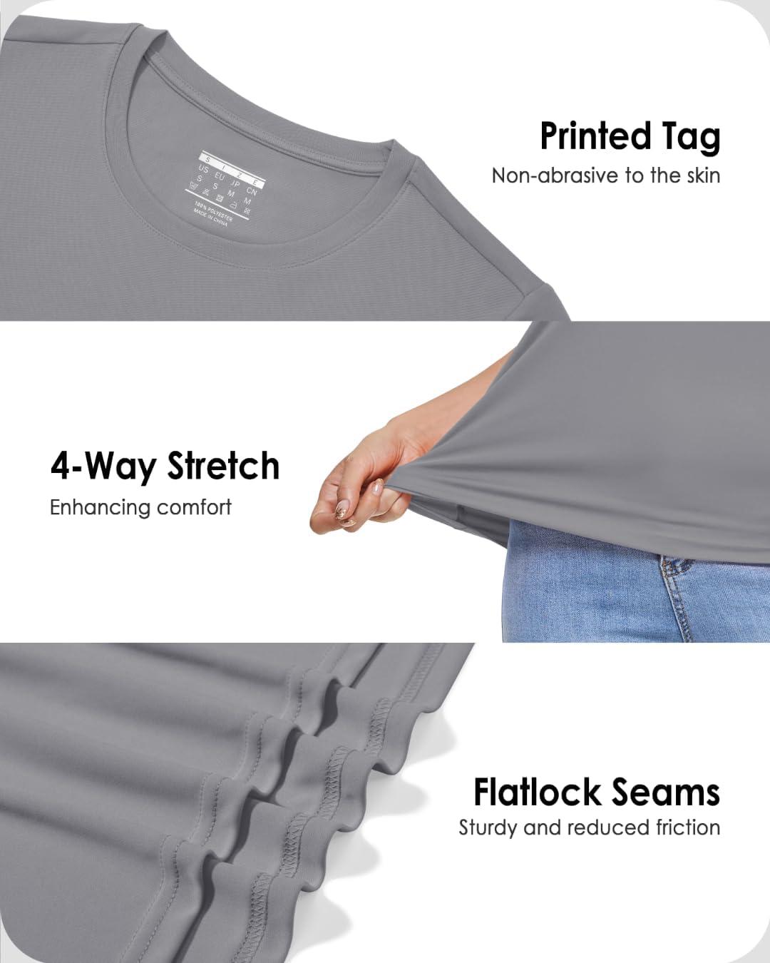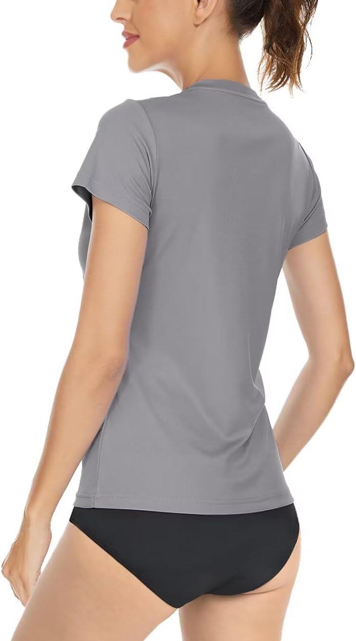 Boladeci Women's Sun Shirts UPF 50+ UV Protection Short Sleeve Rash Guard Quick Dry Lightweight Top T-Shirts Swim Shirts(Light Gray)