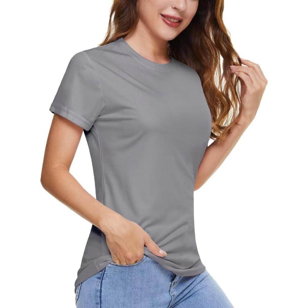 Boladeci Women’s Sun Shirts UPF 50+ UV Protection Short Sleeve Rash Guard Quick Dry Lightweight Top T-Shirts Swim Shirts(Light Gray)