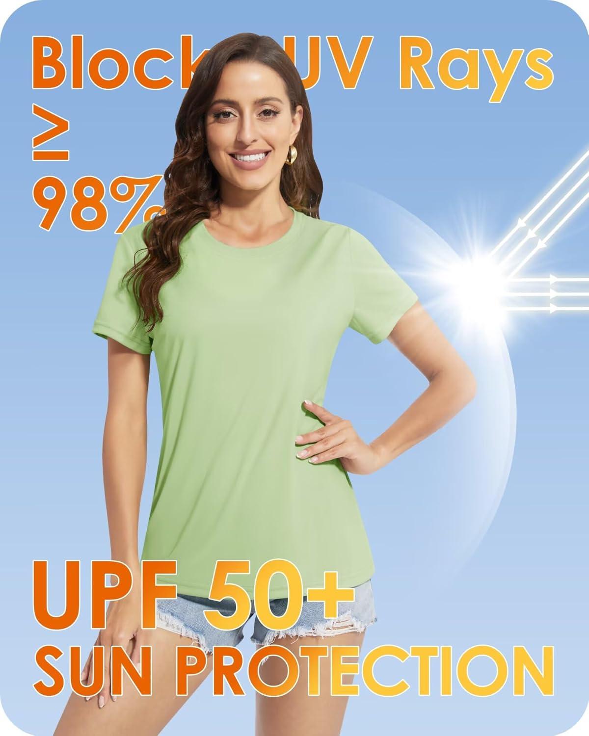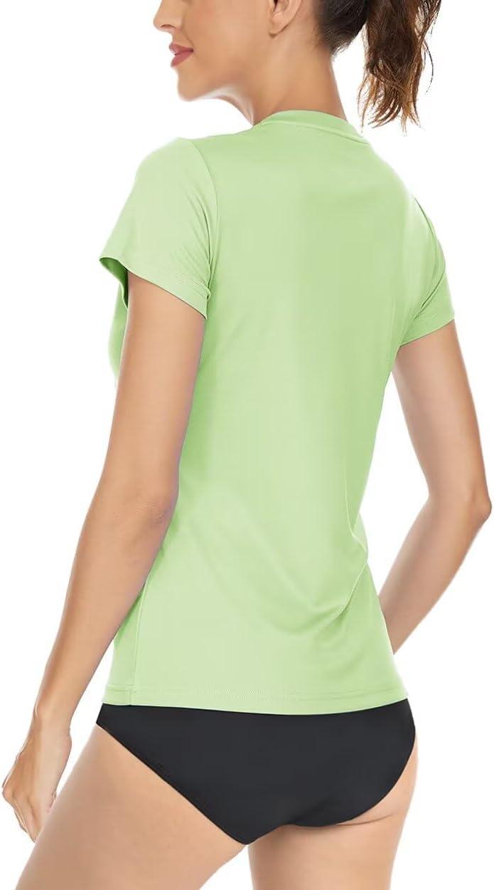 Boladeci Women's Sun Shirts UPF 50+ UV Protection Short Sleeve Rash Guard Quick Dry Lightweight Top T-Shirts Swim Shirts(Light Green)