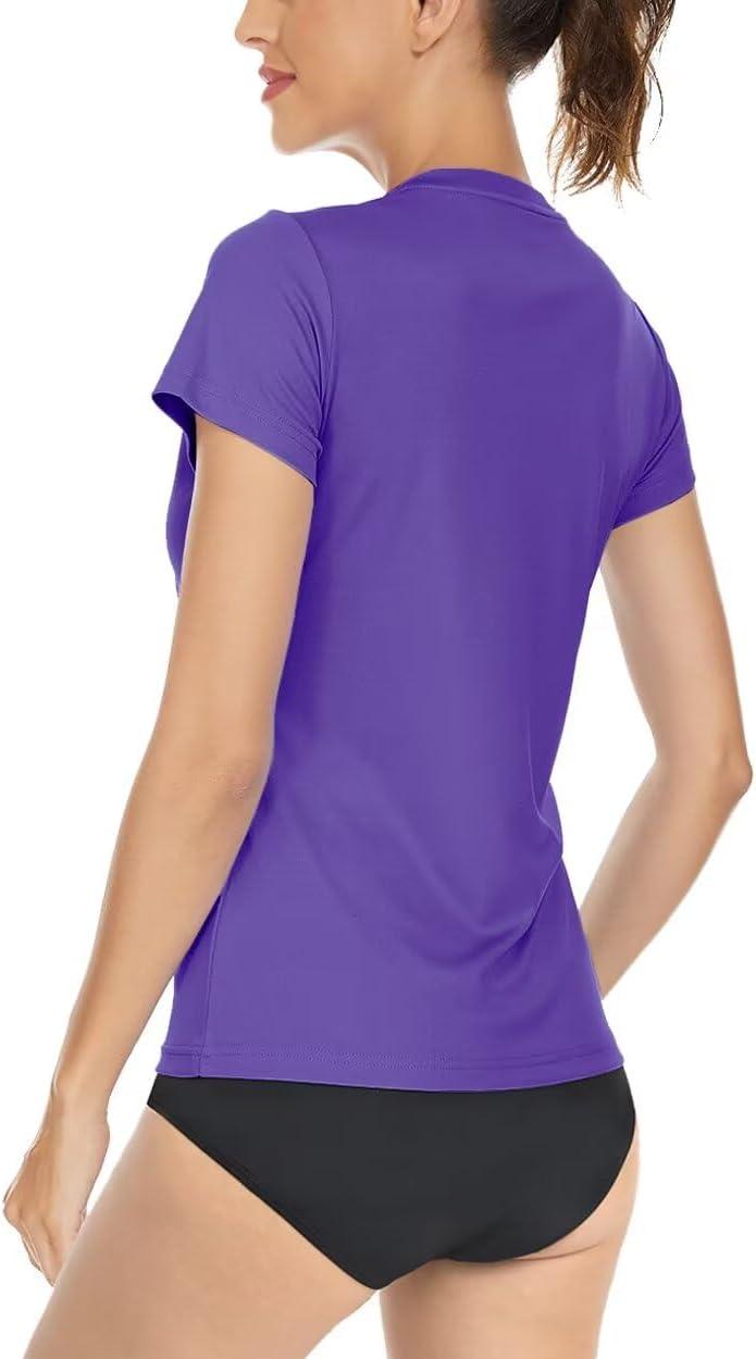 Boladeci Women's Sun Shirts UPF 50+ UV Protection Short Sleeve Rash Guard Quick Dry Lightweight Top T-Shirts Swim Shirts(Purple)