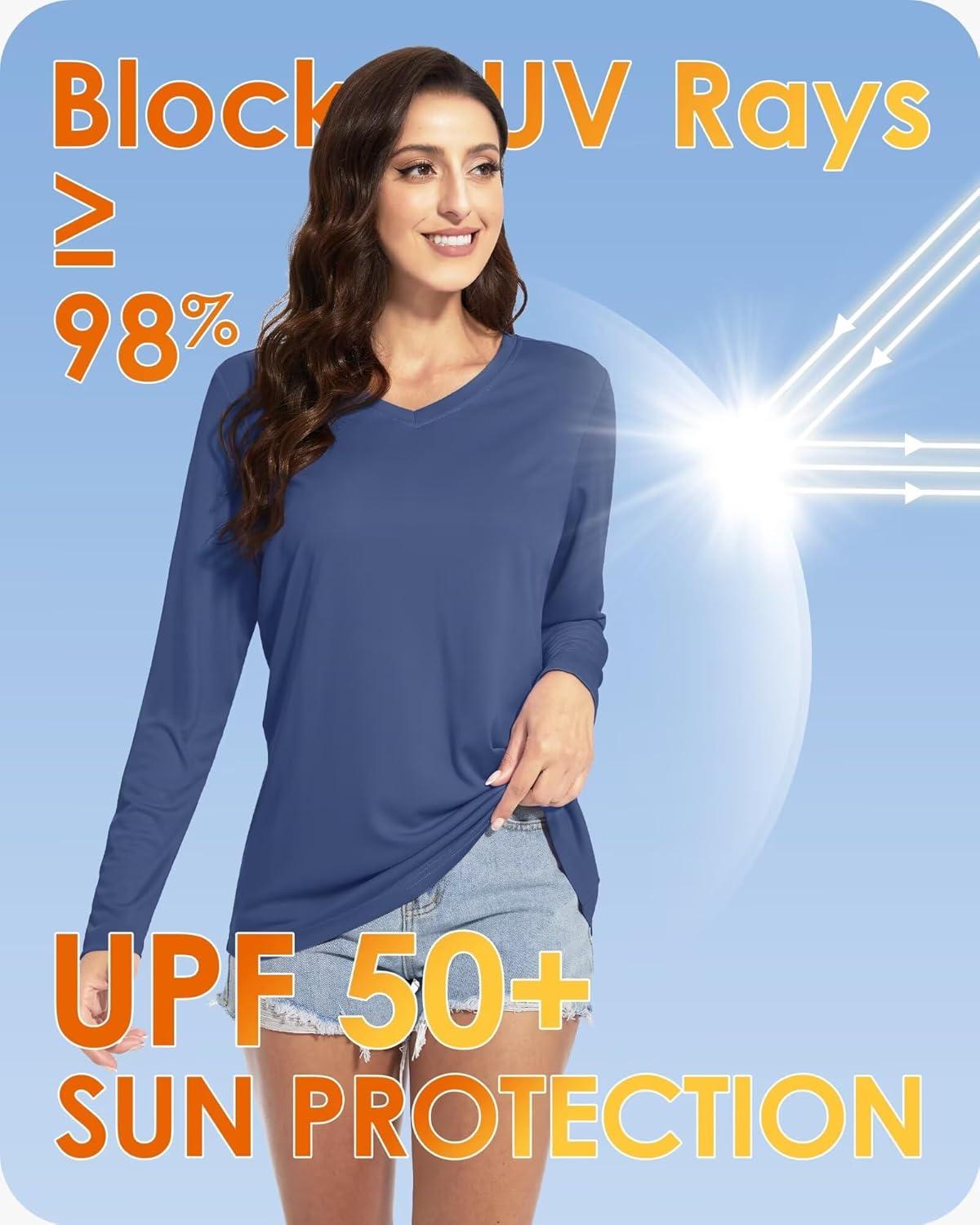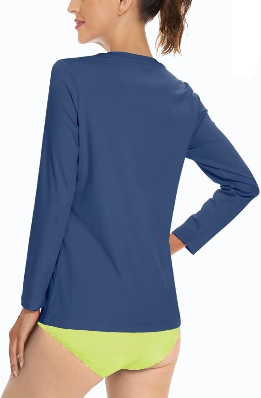 Boladeci Women's Swim Shirts Long Sleeve V Neck T Shirts UPF 50+ Sun Protection Quick Dry Rash Guard(Blue Grey)