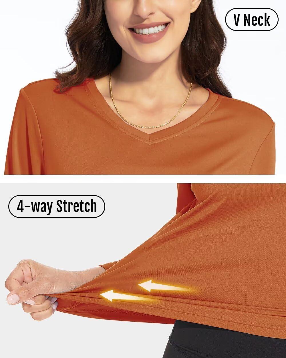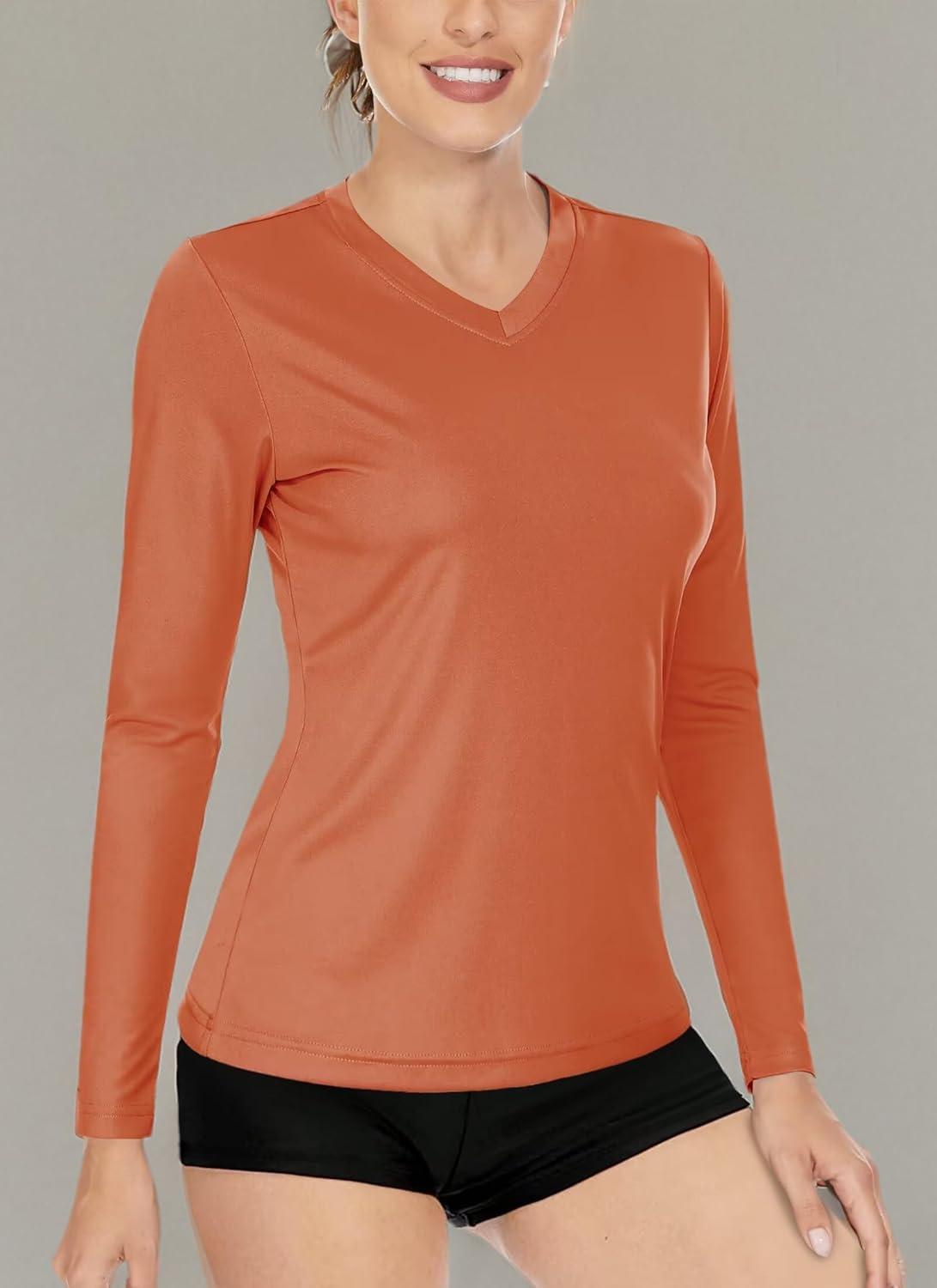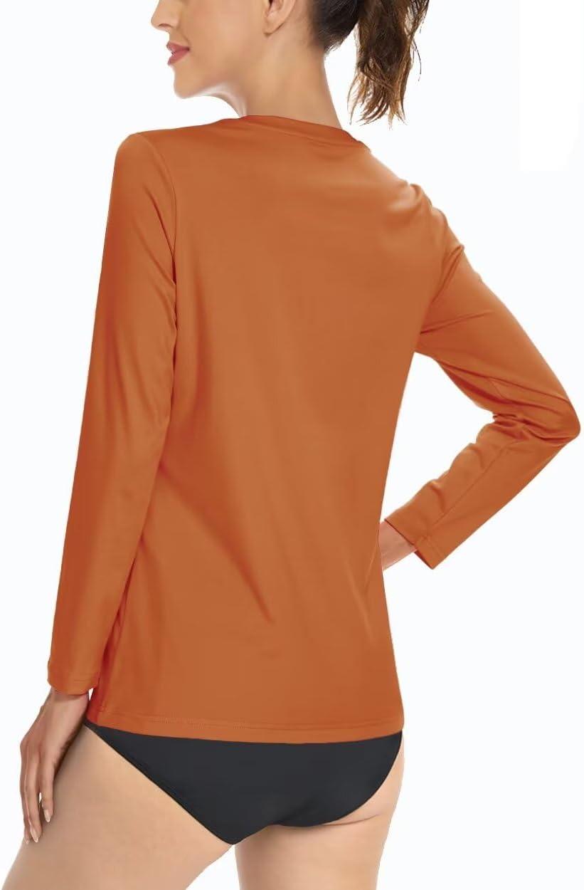 Boladeci Women’s Swim Shirts Long Sleeve V Neck T Shirts UPF 50+ Sun Protection Quick Dry Rash Guard(Dark Orange)