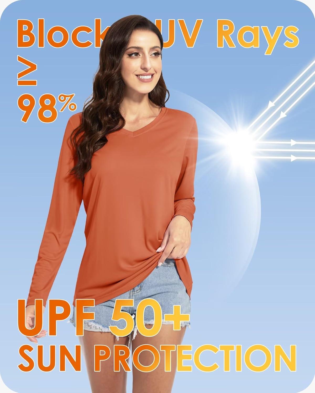 Boladeci Women's Swim Shirts Long Sleeve V Neck T Shirts UPF 50+ Sun Protection Quick Dry Rash Guard(Dark Orange)