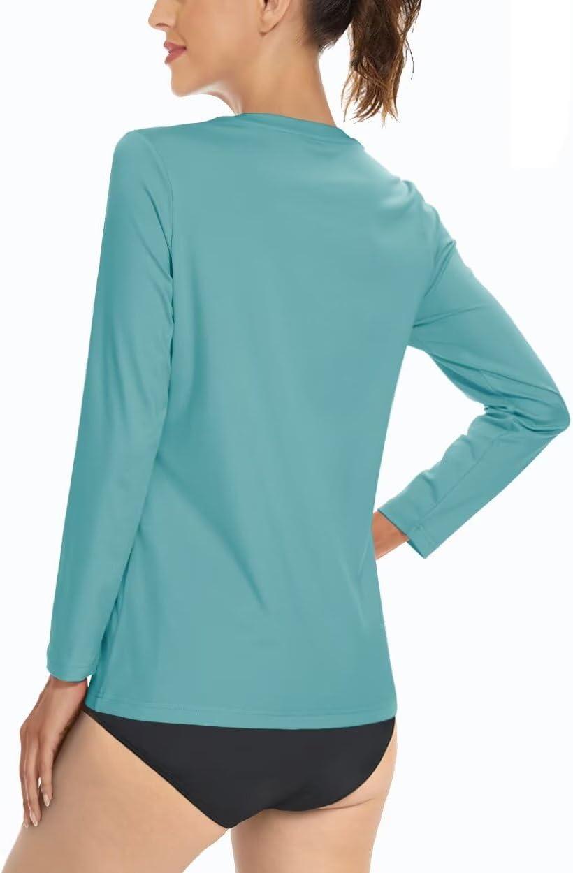 Boladeci Women’s Swim Shirts Long Sleeve V Neck T Shirts UPF 50+ Sun Protection Quick Dry Rash Guard(Grey Green)
