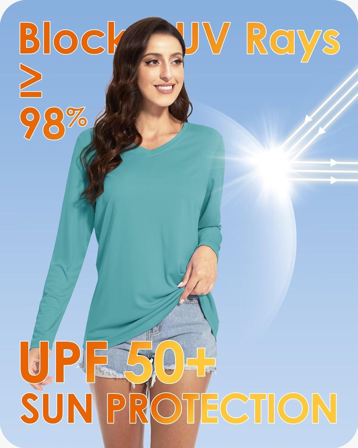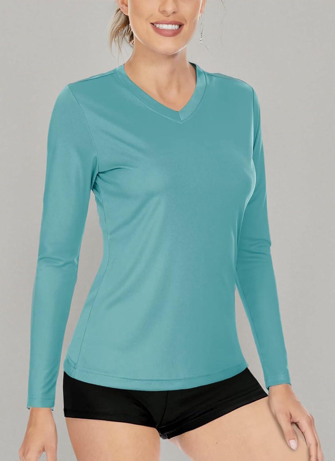 Boladeci Women’s Swim Shirts Long Sleeve V Neck T Shirts UPF 50+ Sun Protection Quick Dry Rash Guard(White)