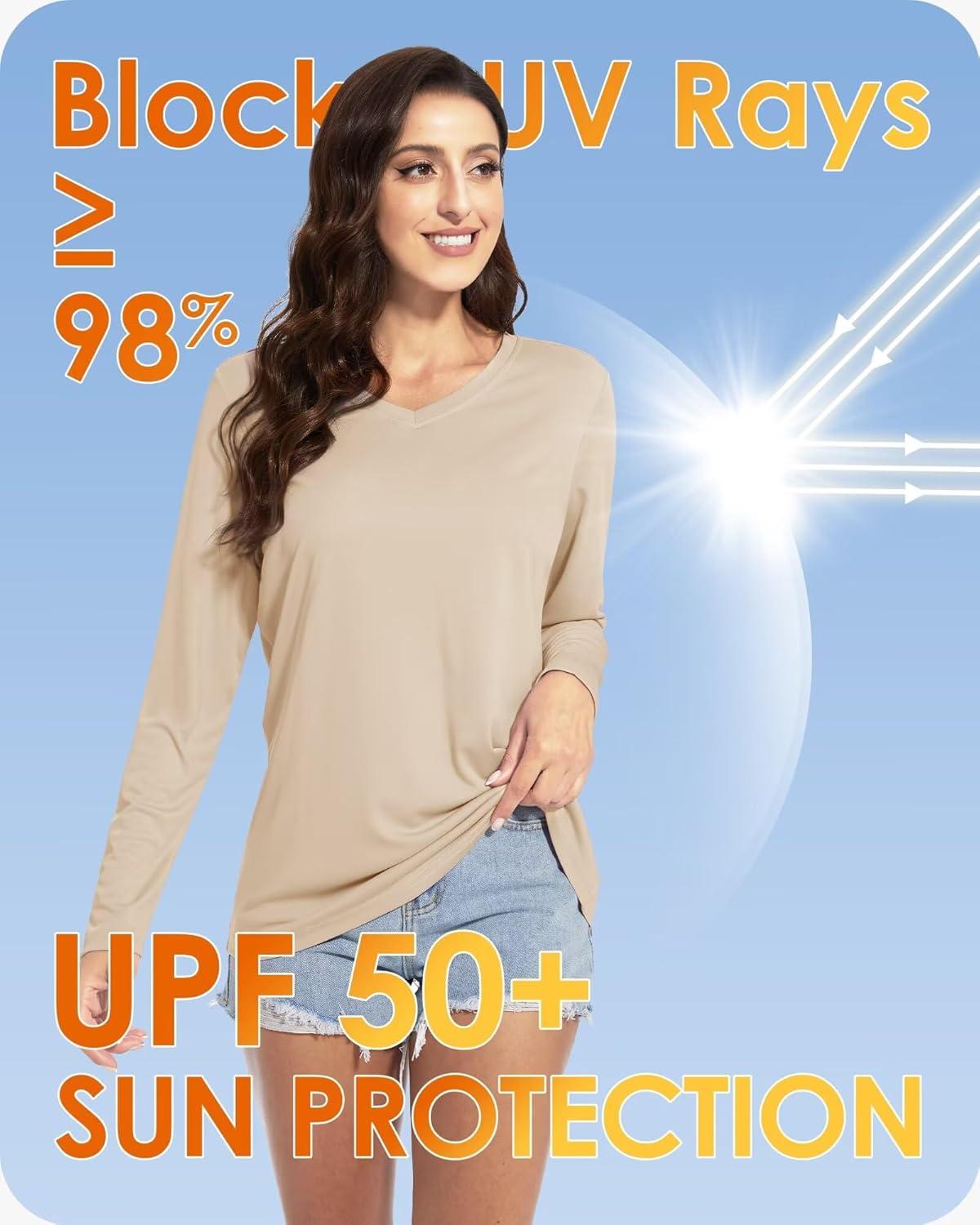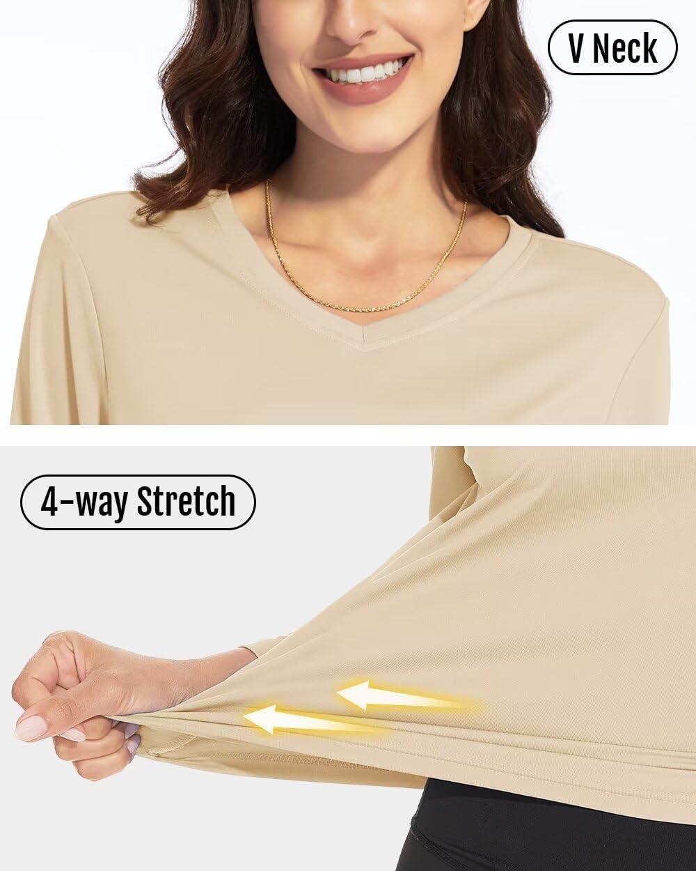 Boladeci Women’s Swim Shirts Long Sleeve V Neck T Shirts UPF 50+ Sun Protection Quick Dry Rash Guard(Light Apricot)
