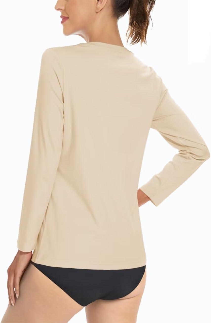 Boladeci Women's Swim Shirts Long Sleeve V Neck T Shirts UPF 50+ Sun Protection Quick Dry Rash Guard(Light Apricot)