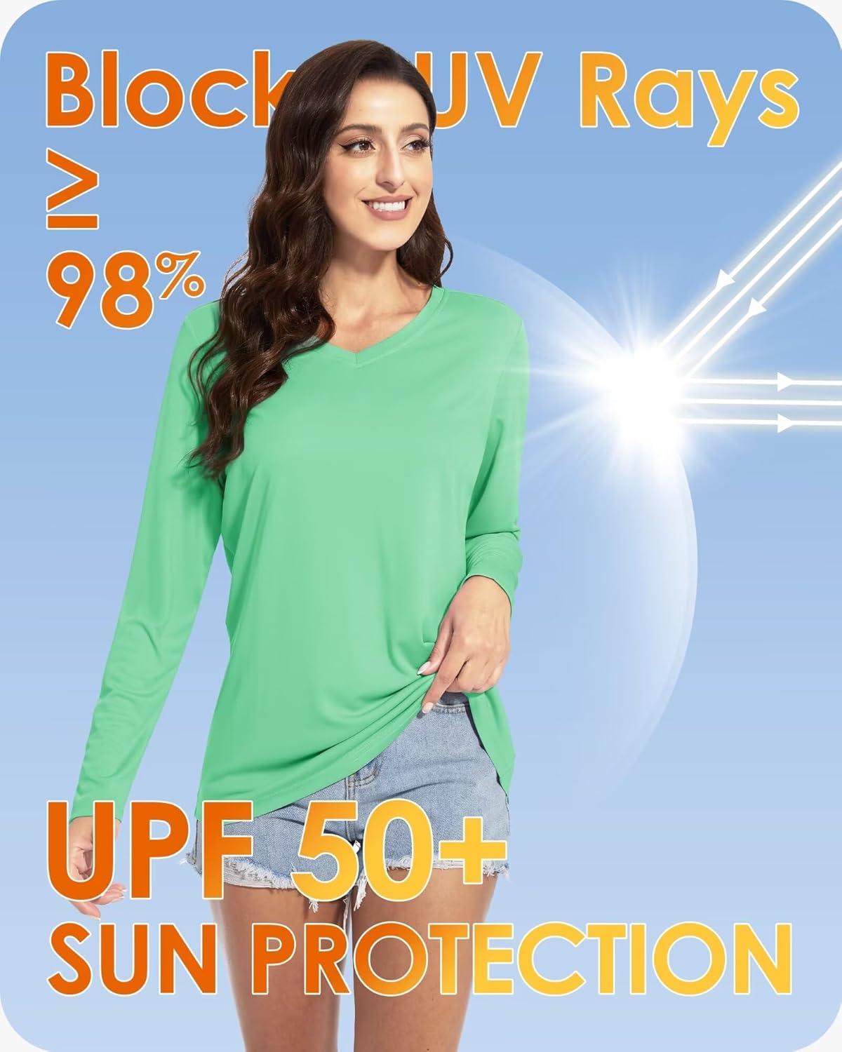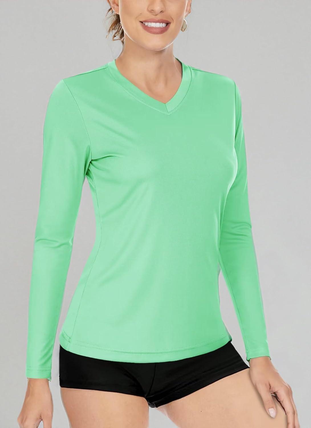 Boladeci Women’s Swim Shirts Long Sleeve V Neck T Shirts UPF 50+ Sun Protection Quick Dry Rash Guard(Mint Green)