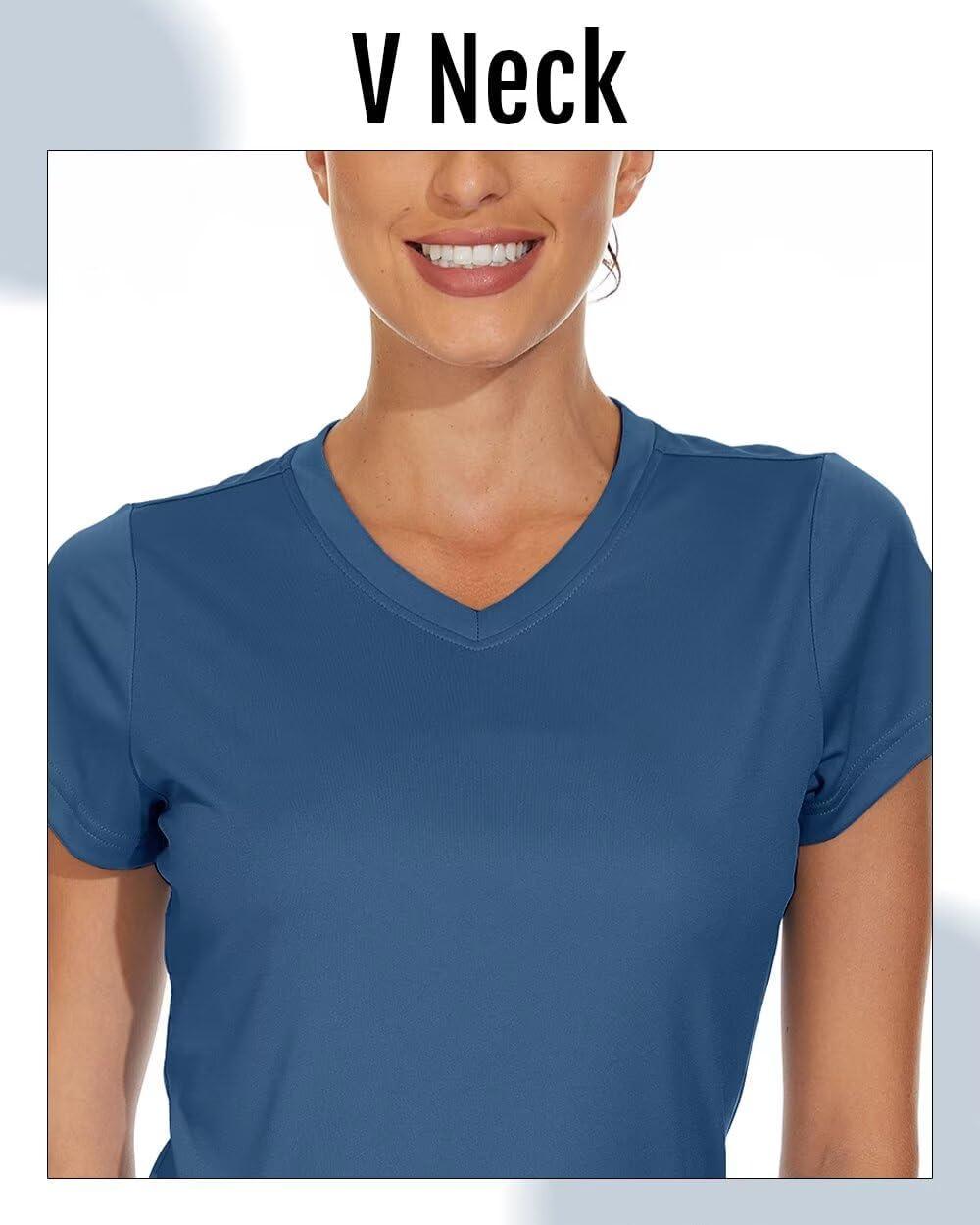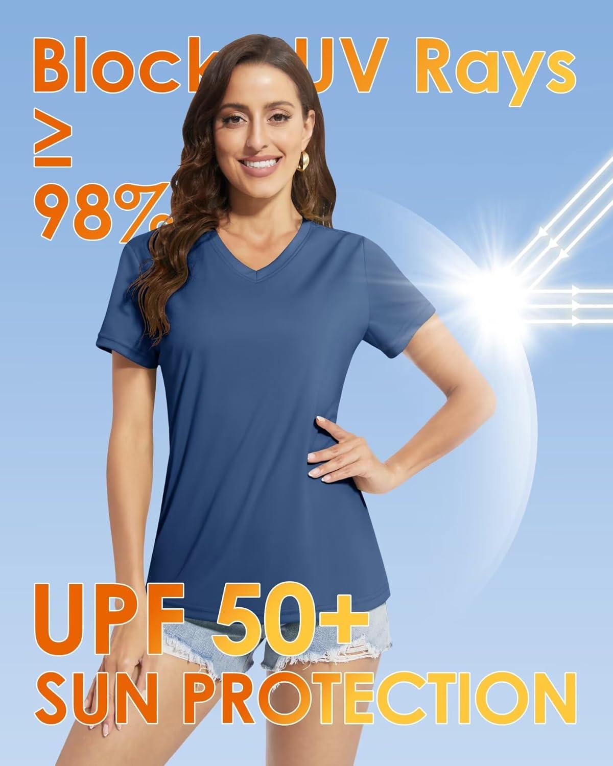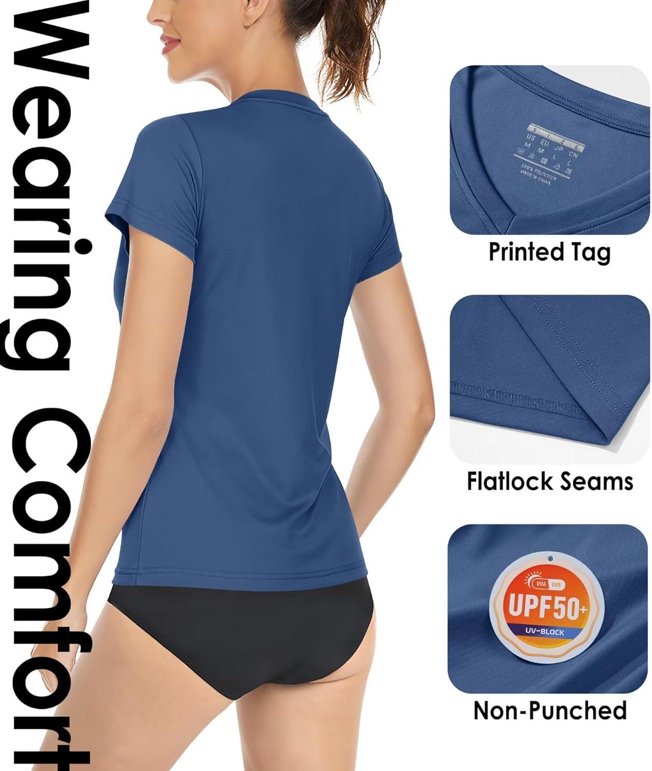 Boladeci Rash Guard for Women Short Sleeve V-neck UPF 50+ Sun Protection Clothing SPF Shirts UV Shirts Lightweight Quick Dry Water Swim Shirts