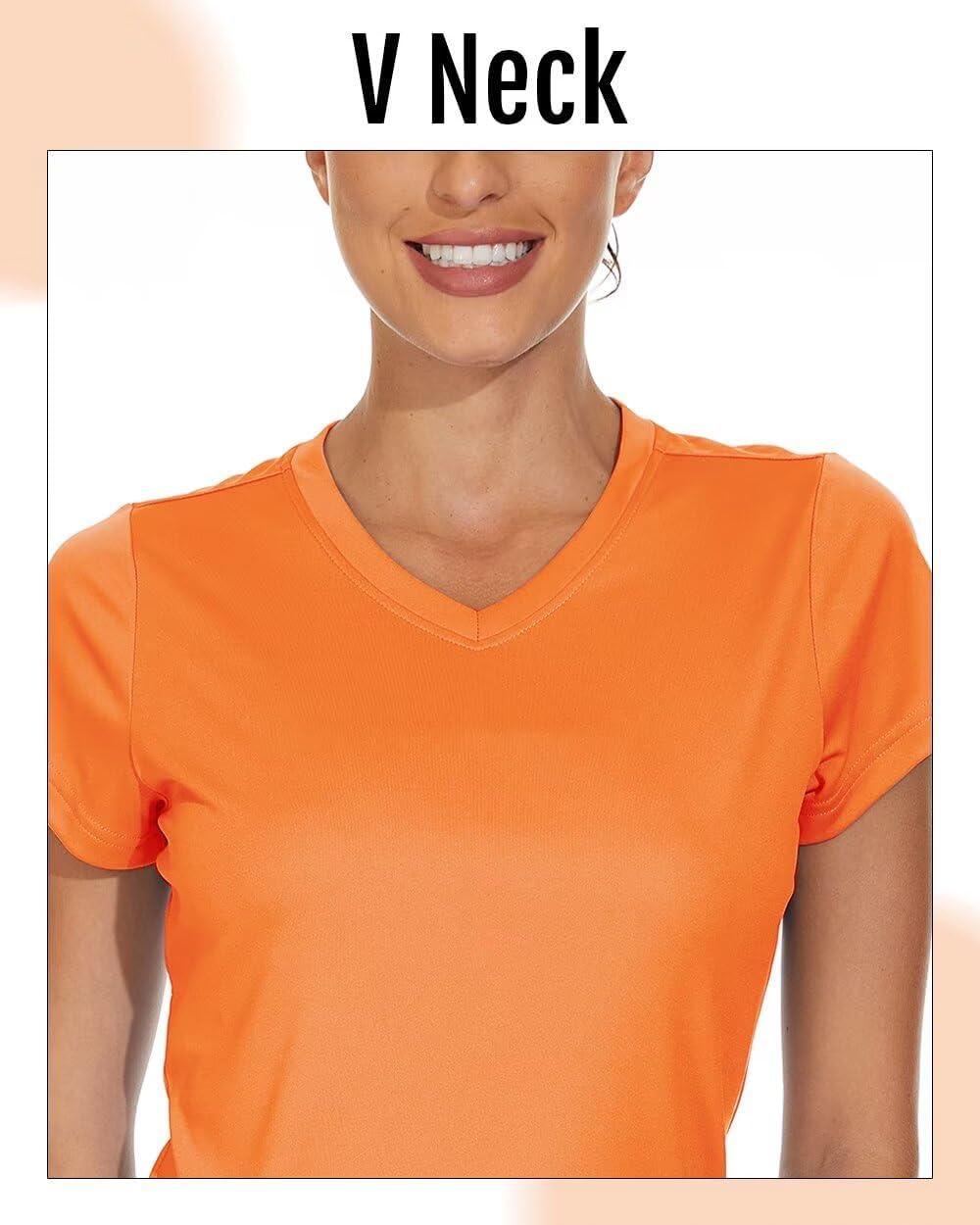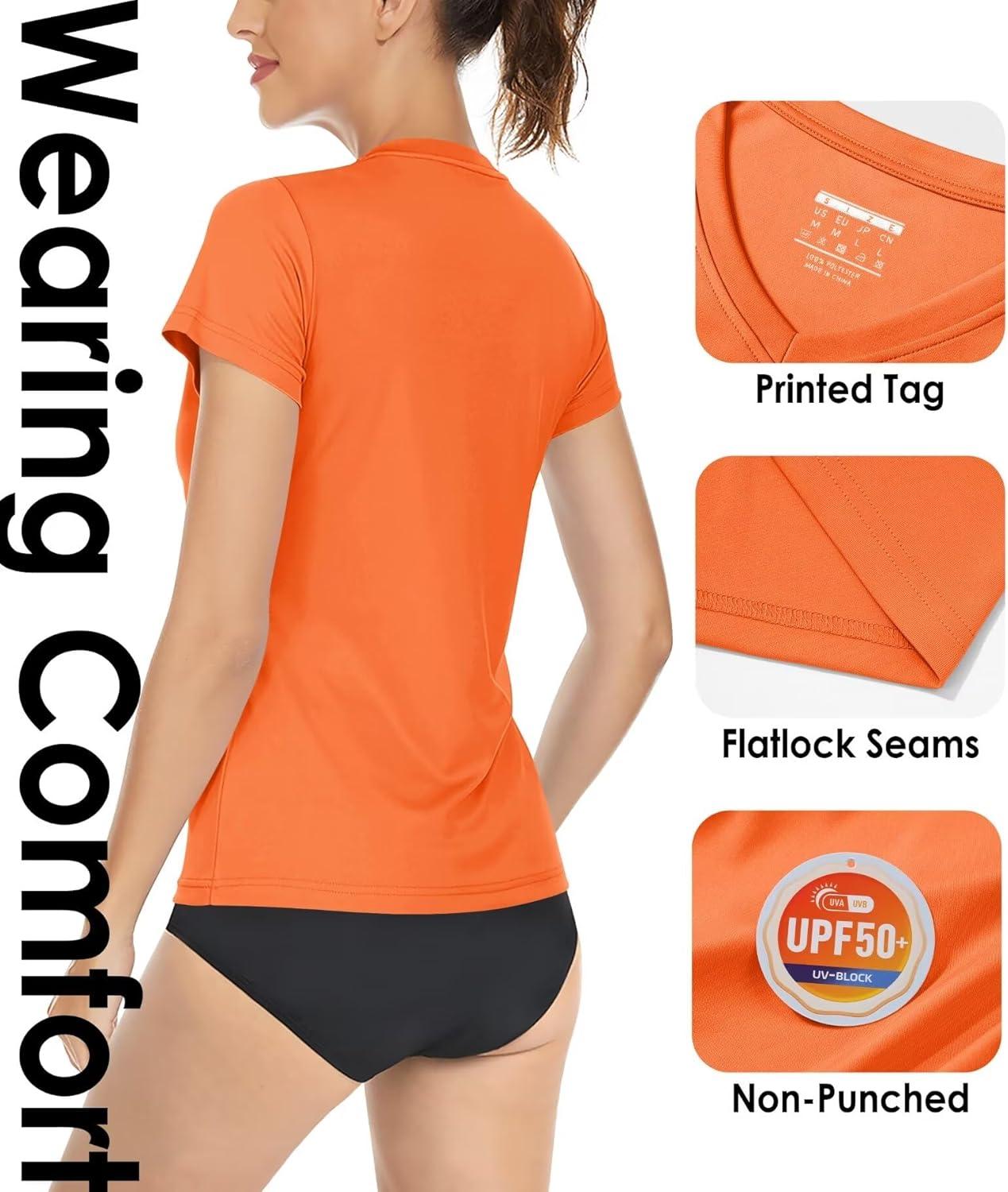 Boladeci Women’s Swim Shirts – UPF 50+ Sun Protection Short Sleeve V Neck T-Shirts Workout Tops(Orange)