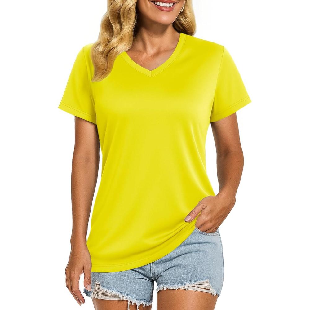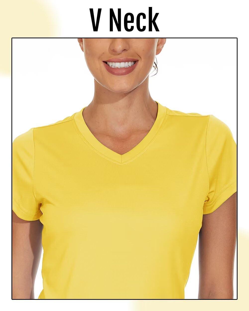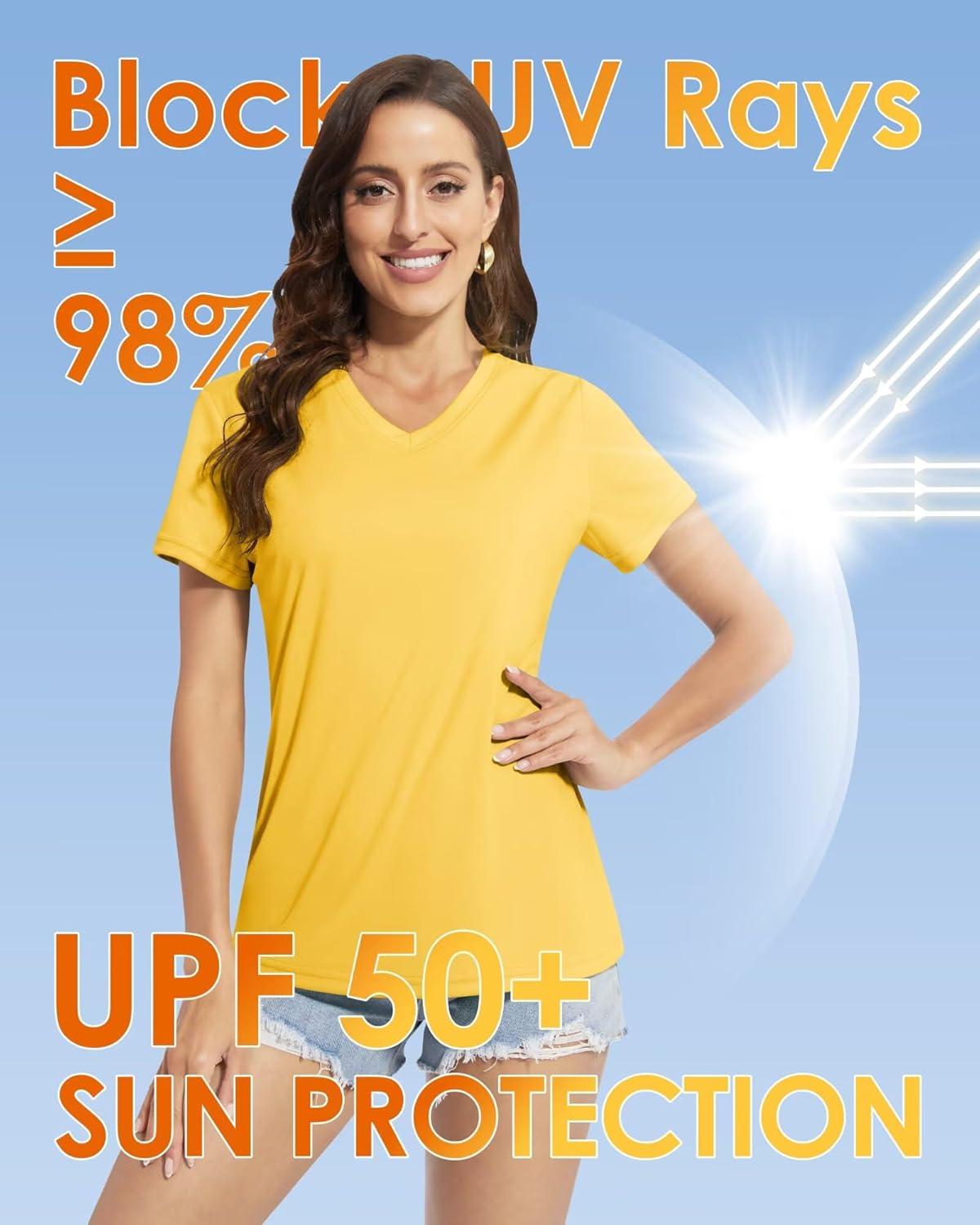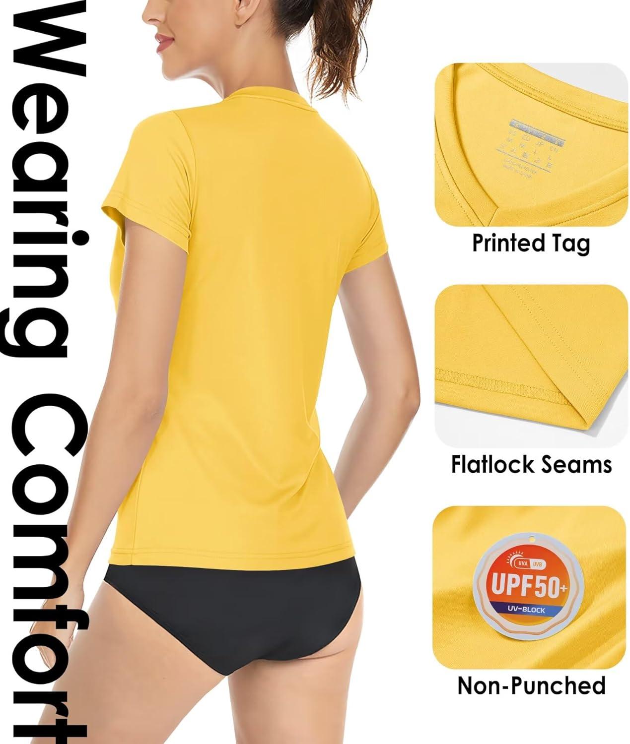 Boladeci Women’s Swim Shirts – UPF 50+ Sun Protection Short Sleeve V Neck T-Shirts Workout Tops(Yellow)