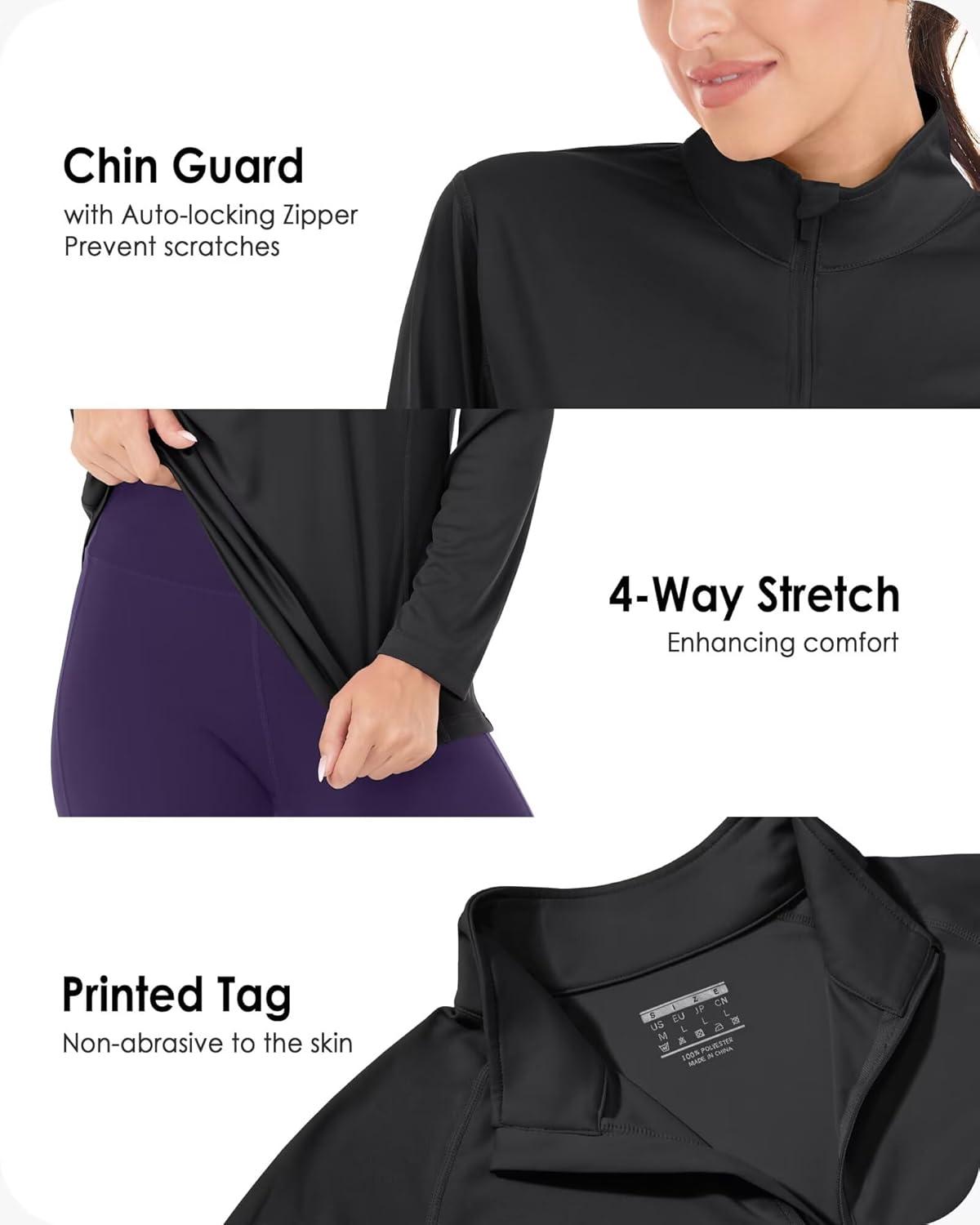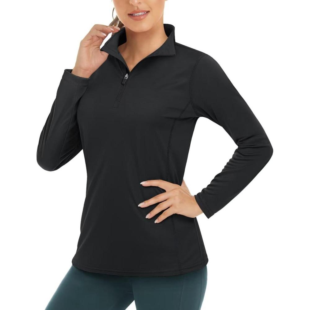 Boladeci Women’s UPF 50+ Sun Shirts 1/4 Zip Lightweight Long Sleeve Summer Tops UV Protection Quick Dry Golf Shirts(Black)