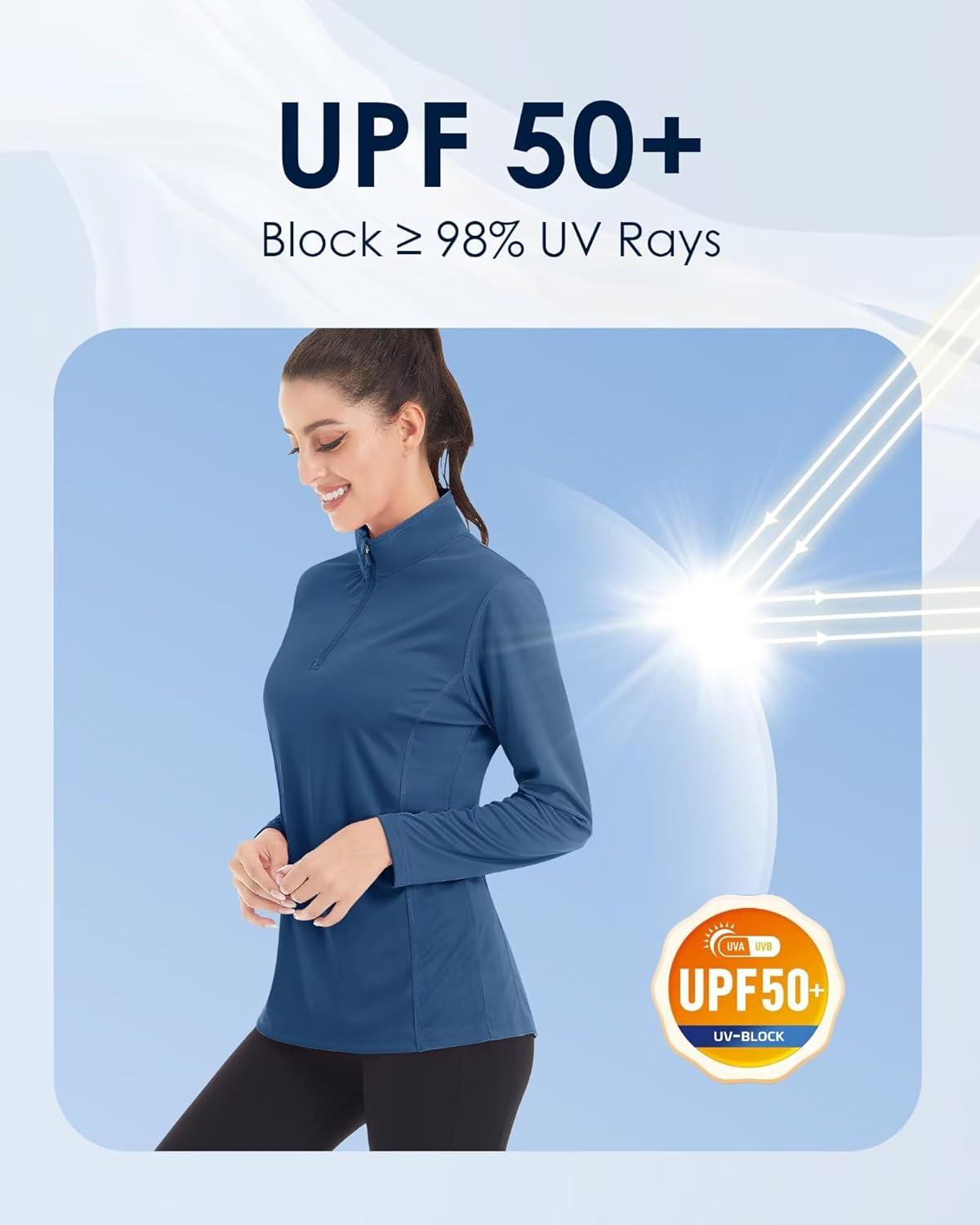 Boladeci Women’s UPF 50+ Sun Shirts 1/4 Zip Lightweight Long Sleeve Summer Tops UV Protection Quick Dry Golf Shirts(Blue)